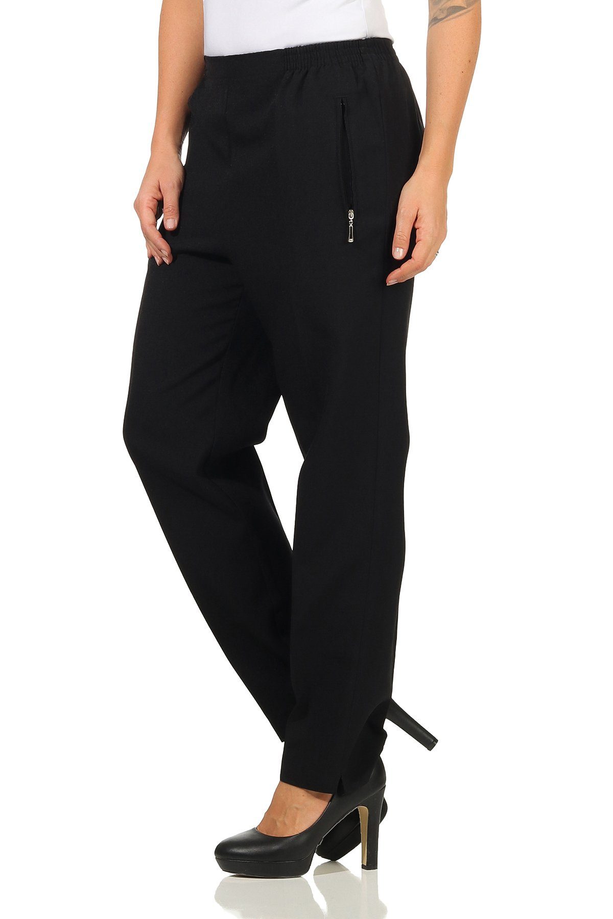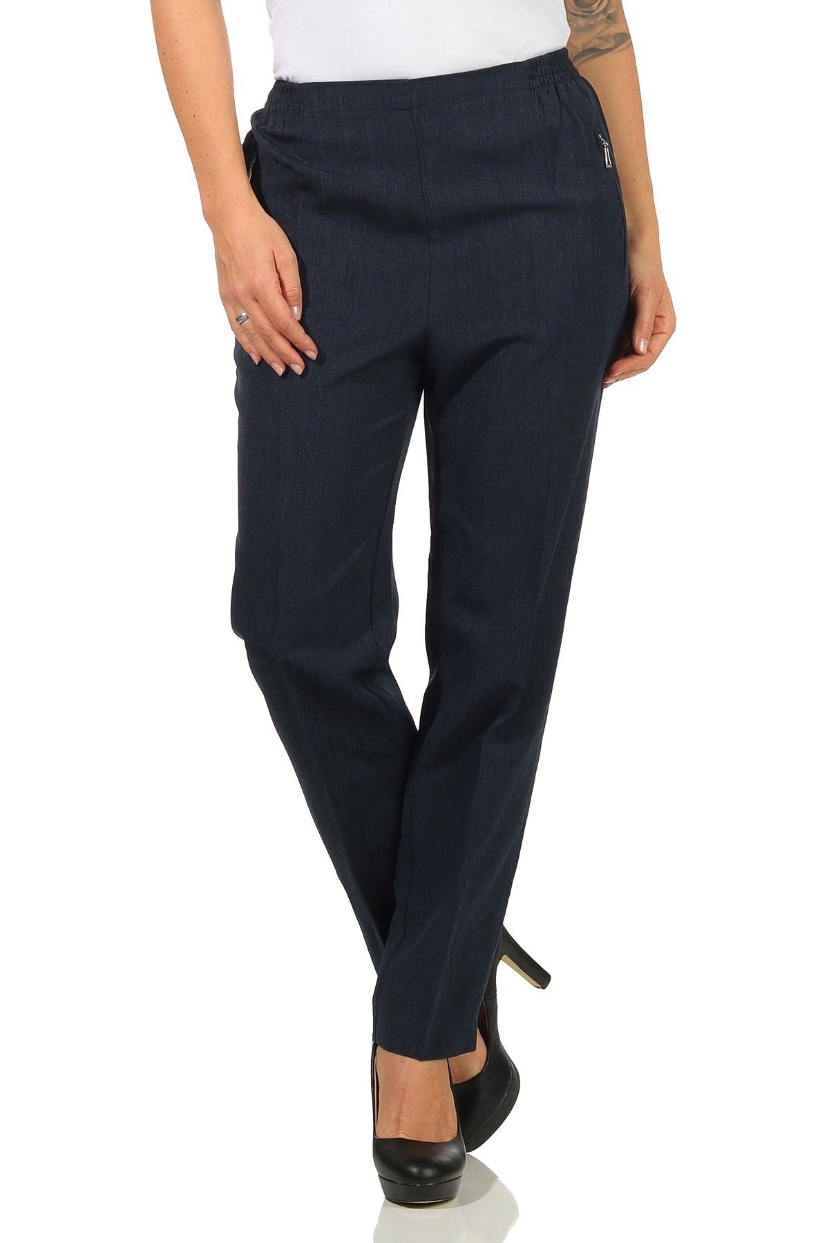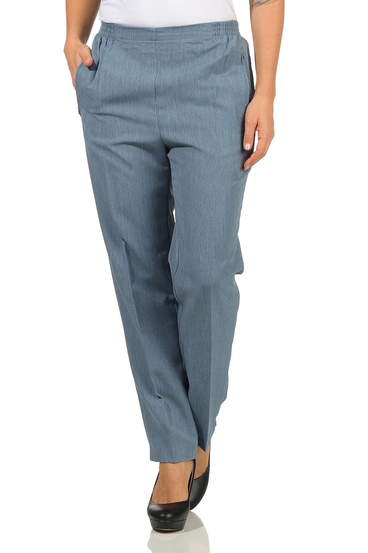 Damen Stoffhose mit Gummizug | Schlupfhosen meliert | Kurzgröße in modischen Farben mit klassischer Passform
