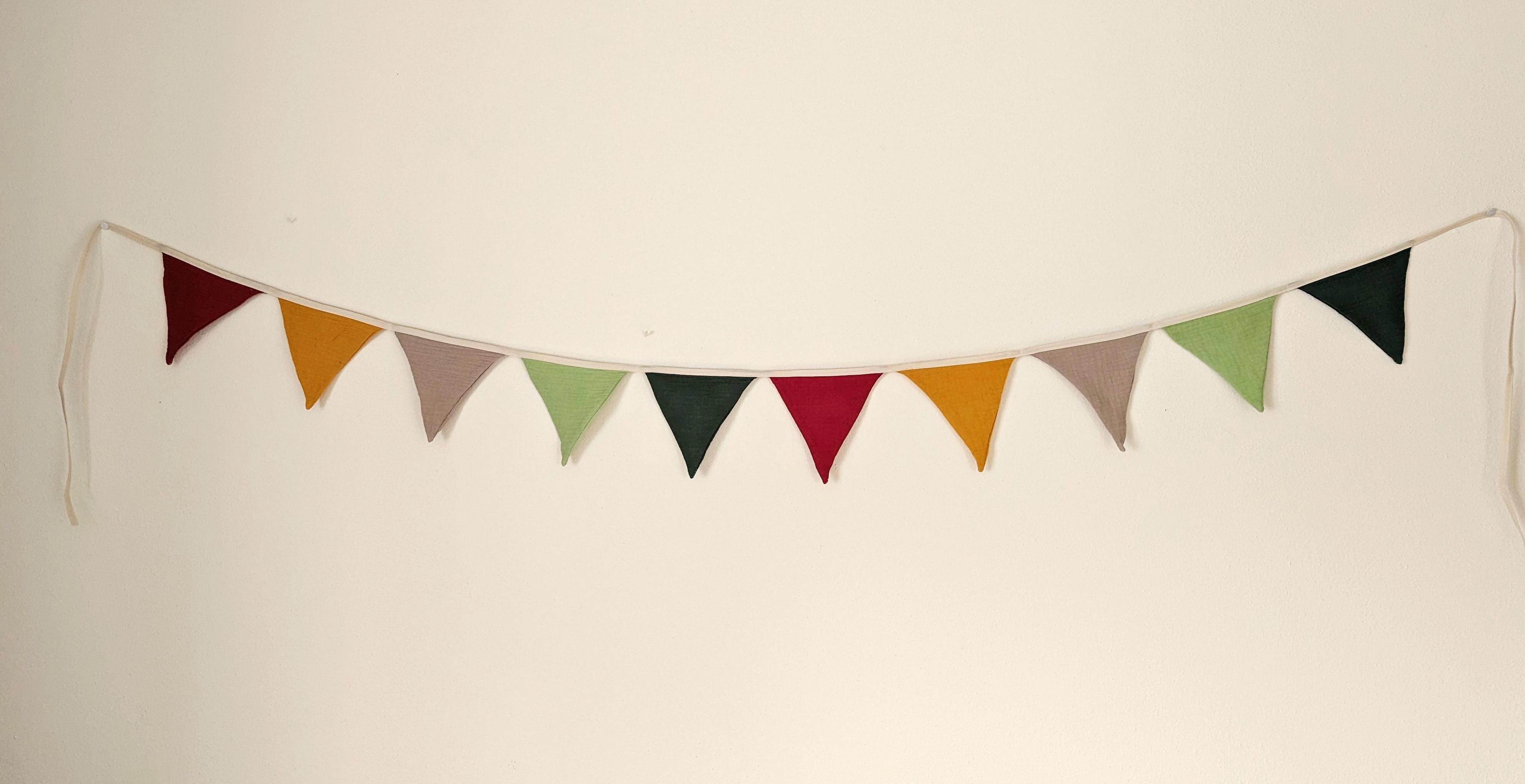 Farbenfrohe Wimpelgirlande aus weichem leichten Musselinstoff