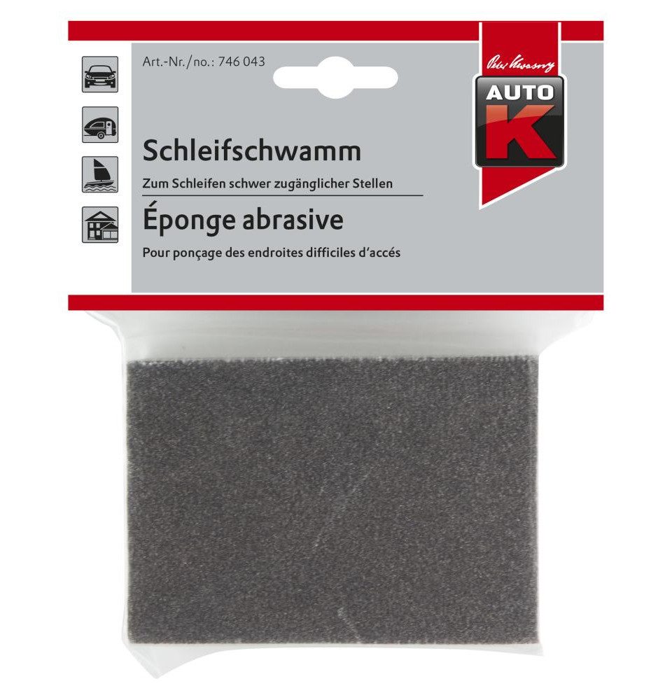 Auto-K Schleifschwamm ist hervorragend zum Schleifen schwer zugänglicher Stellen geeignet. Er passt sich Vertiefungen, abgerundeten Kanten und gerundeten Formen an.