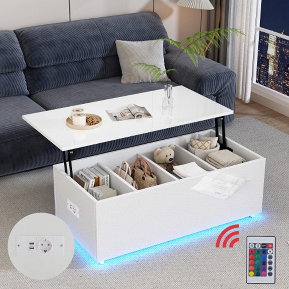 MODERNES MINIMALISTISCHES DESIGN: Eleganter weißer Hochglanz-Couchtisch mit coolen LED-Leuchten an der Unterseite. Sie können die Lichter mit Ihrer Fernbedienung oder Ihrem Mobiltelefon steuern, um das Licht zu finden, das zum Ambiente Ihres Hauses passt.
