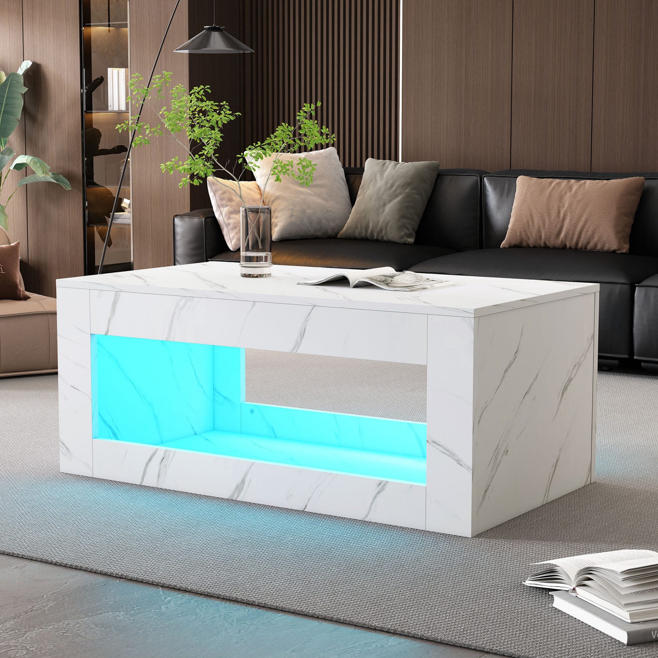 Das schlichte Design mit Marmoroptik fügt sich in viele Einrichtungsstile ein – ob minimalistisch, modern oder elegant. Der Tisch ist funktional und gleichzeitig ein stilvolles Highlight, das Wohnzimmern einen Hauch von Luxus und Moderne verleiht.
