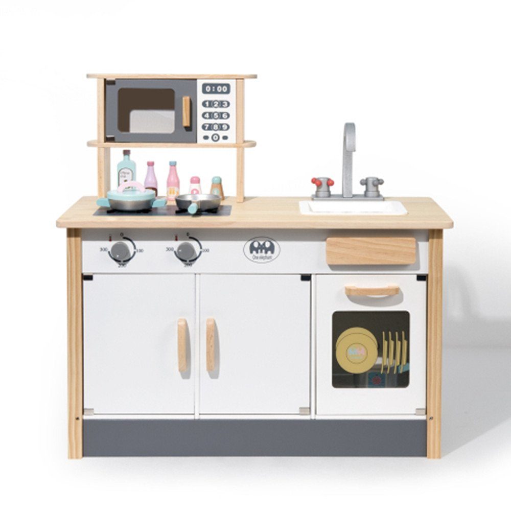 MASSIVHOLZKONSTRUKTION: Das aus Massivholz mit glatt polierten Kanten gefertigte Kinderküchen-Spielset wurde getestet,um ein sicheres Spielen für Kinder zu gewährleisten.