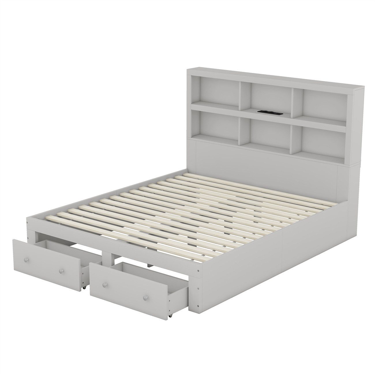 Multifunktionales DesignDas Kopfteil des Bettes ist mit 6 Ablagefächern mit USB-Ladeanschlüssen ausgestattet, in denen Bücher, Mobiltelefone und andere häufig verwendete Gegenstände bequem und praktisch aufbewahrt werden können. Das Kopfende des Bettes ist mit 2 Schubladen ausgestattet, in denen Sie Kleidung usw. aufbewahren können, wodurch das Zimmer schön und aufgeräumt aussieht.