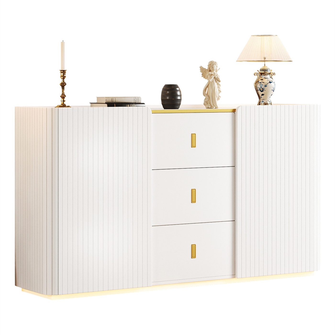 Dekorativer Akzentschrank – Dieser Akzentschrank ist mit exquisiten vertikalen Streifen auf 2 Türen versehen und verleiht Ihrem Zuhause einen einzigartigen Bohème-Stil. In Kombination mit goldenen Griffen und Schubladenböden sieht das Sideboard elegant und außergewöhnlich aus.