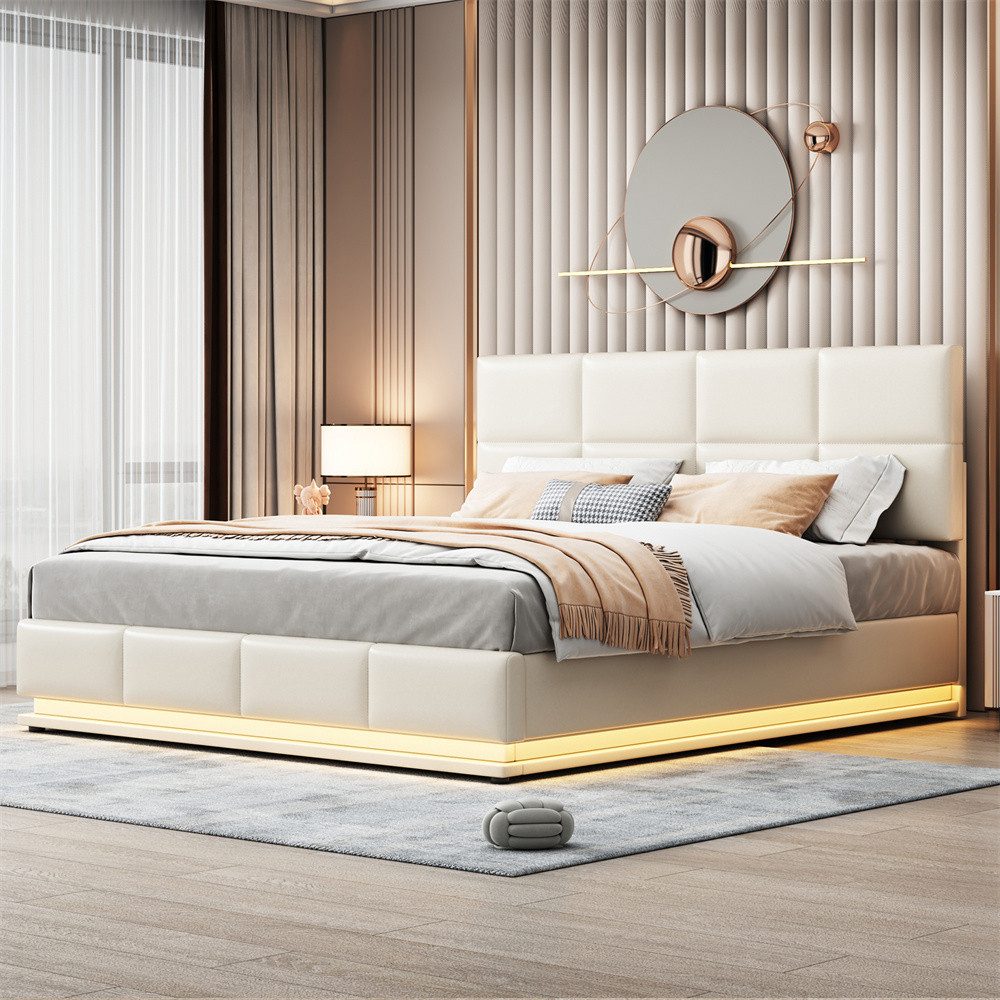 Product Name:Polsterbett 180x200 cm mit LED Beleuchtung & Hydraulisch anhebbarer Bettstauraum ,Bettkasten & Lattenrost Bezug aus Kunstleder Doppelbett Erwachsenen Jugendbett Beige