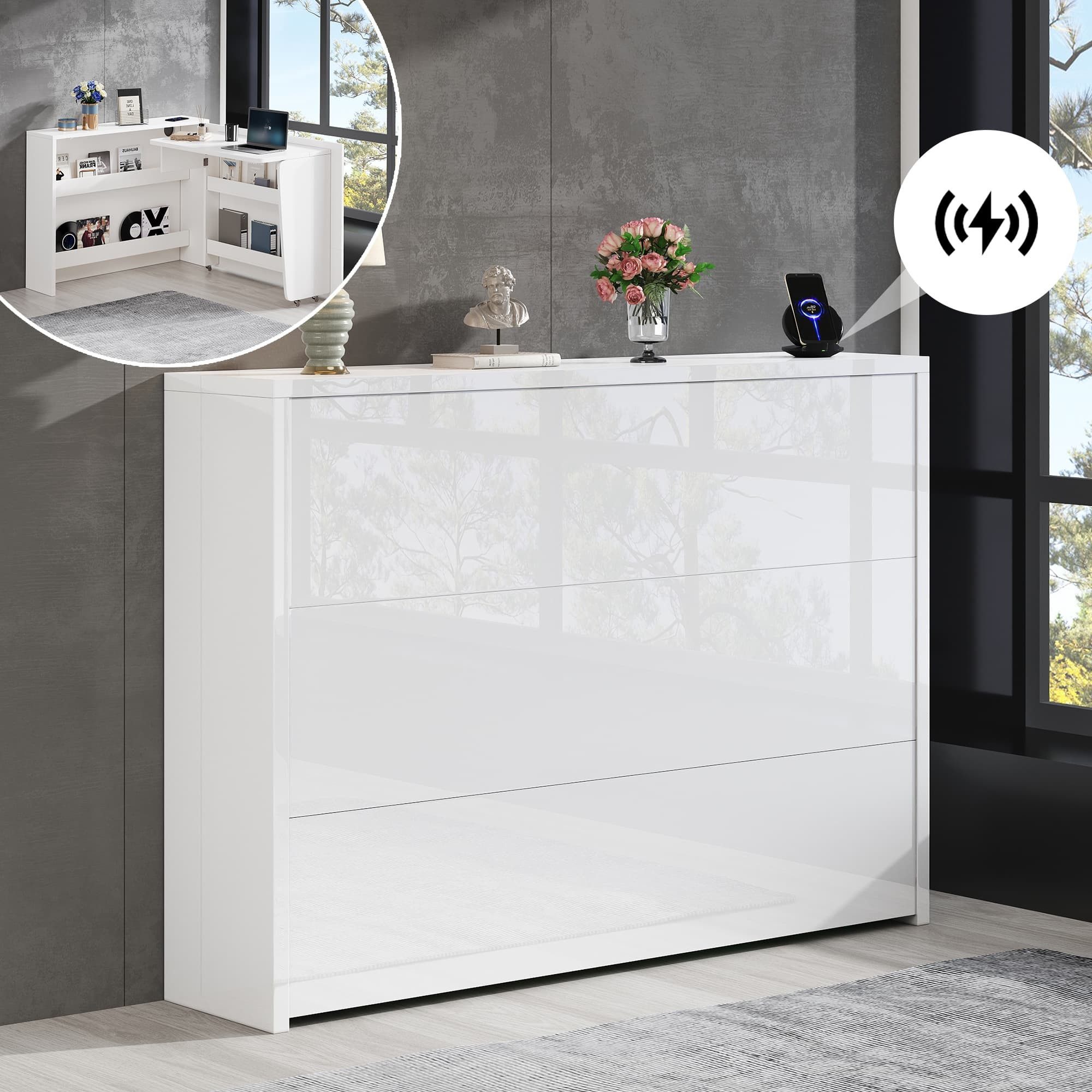 Funktion trifft Eleganz – dieser faltbare Schreibtisch in Hochglanz ist mehr als nur ein Möbelstück. Mit seinem cleveren 2-in-1-Design kann er als kompaktes Sideboard verwendet oder als vollwertiger Arbeitsplatz mit großzügiger Tischfläche (95×51 cm) ausgeklappt werden.