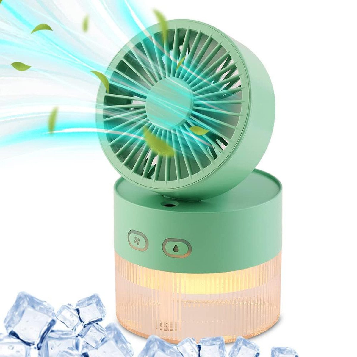 Luftbefeuchter & Tischventilator - Unser Mini Schreibtisch Fan ist eine 3 in 1 Kombination aus Ventilator,Luftbefeuchter und Nachtlicht. Mit der neuesten Nebelverdampfer-Kühltechnologie können Sie den feuchten Nebel genießen, um Ihren Körper schnell abzukühlen.