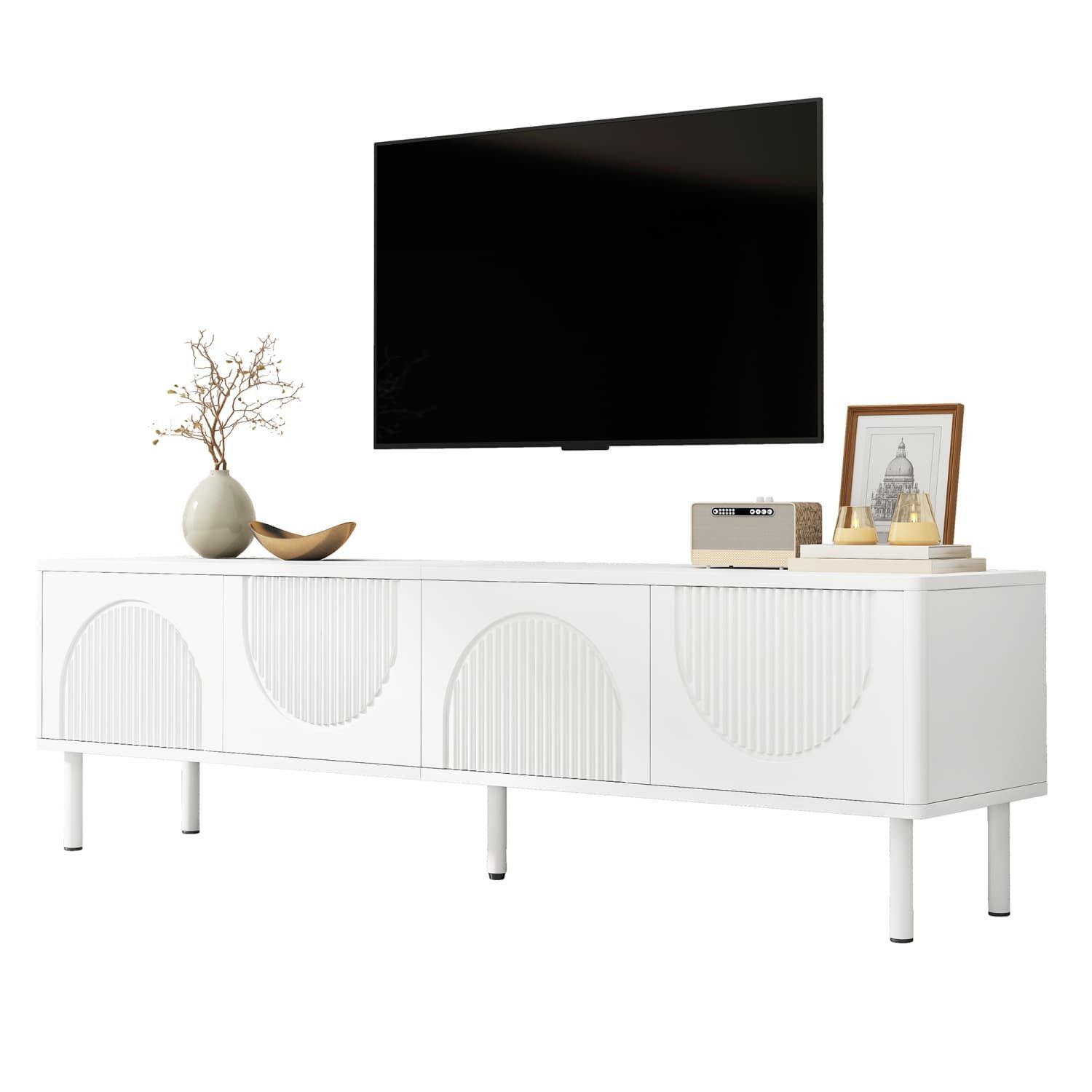 MODERNES DESIGN – Mattweißes Finish und kunstvolle 3D-Relieftüren machen dieses TV-Lowboard zu einem stilvollen Blickfang. Passt perfekt zu Wabi-Sabi-, Cream- oder Skandi-Interieurs.