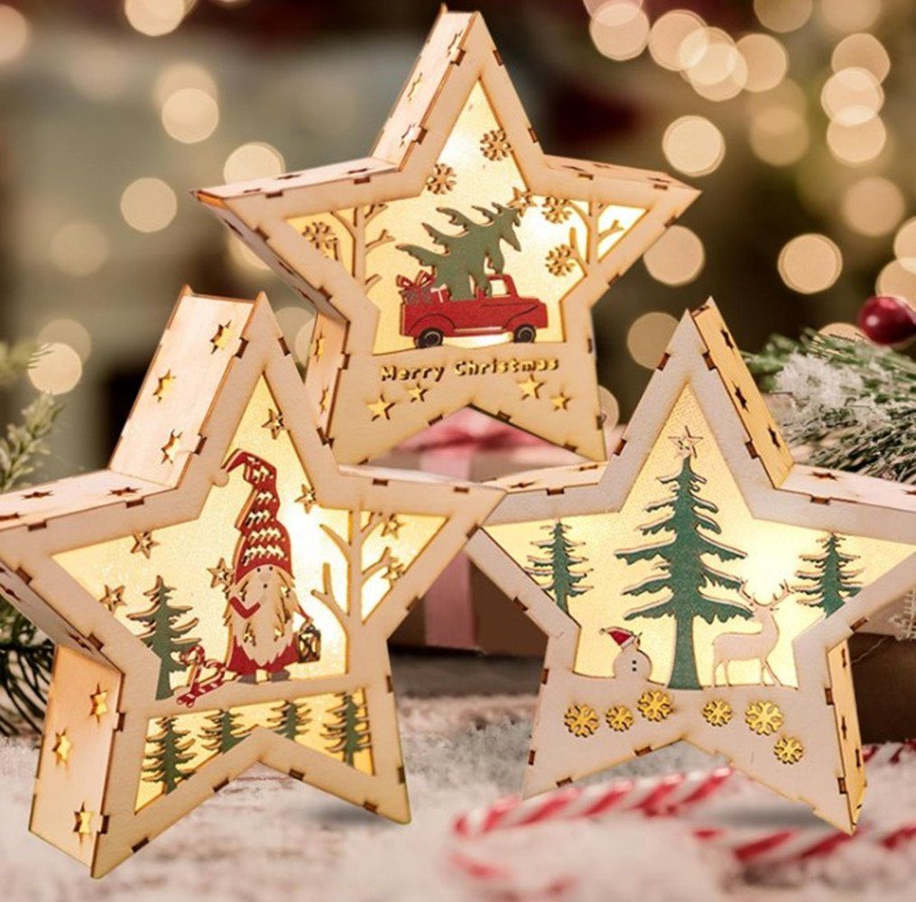 Hochwertiges MaterialDiese hölzerne ist hochwertig und besteht aus hochwertigem und umweltfreundlichem Holz. Dank der Laserschneidtechnologie hat das Holz flache Kanten und keine Grate. und mit LED-Beleuchtung ausgestattet, langlebig und ein Hingucker. Wenn Sie sie einschalten, leuchten sie in einem warmen Licht und eignen sich perfekt für die Weihnachtsdekoration.