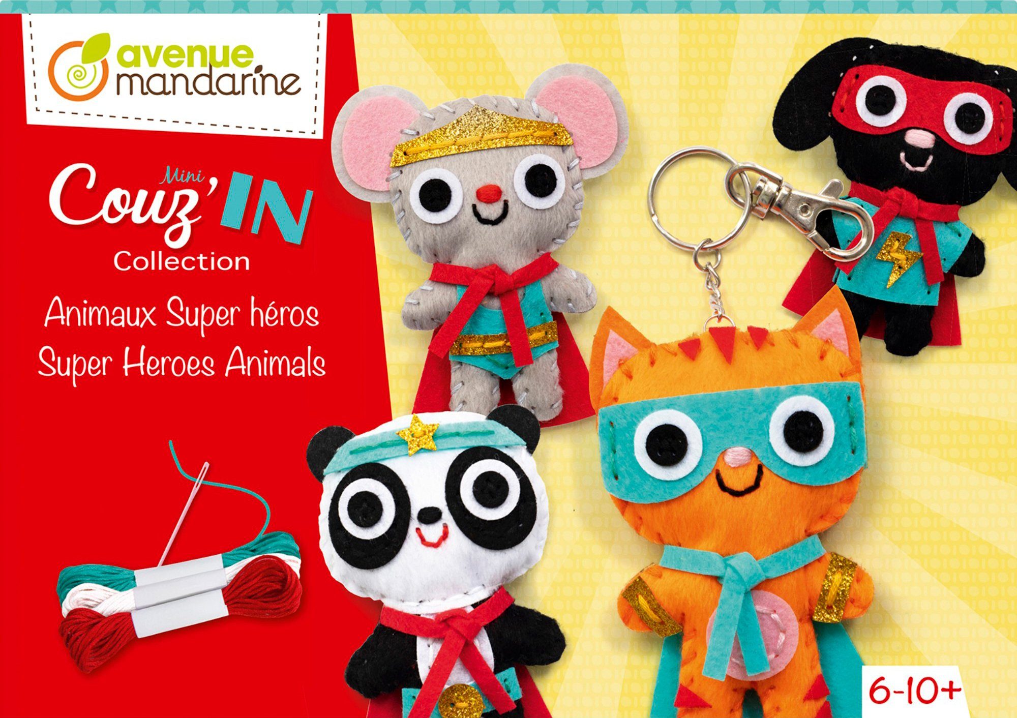 Avenue Mandarine Kreativ-Box Nähen Mini Couz’IN 'Superhelden' mit Material für die Gestaltung von 4 süßen Superhelden als Schlüsselanhänger. In diesem Set ist alles enthalten, was benötigt wird, um 4 Tiere im Superhelden-Look zu Nähen. Применить genäht haben die Figuren eine Размер von ca. 9,5 x 5,8 cm. Für Jung und Alt mit Spaß an der Handarbeit. Inklusive Anleitung.