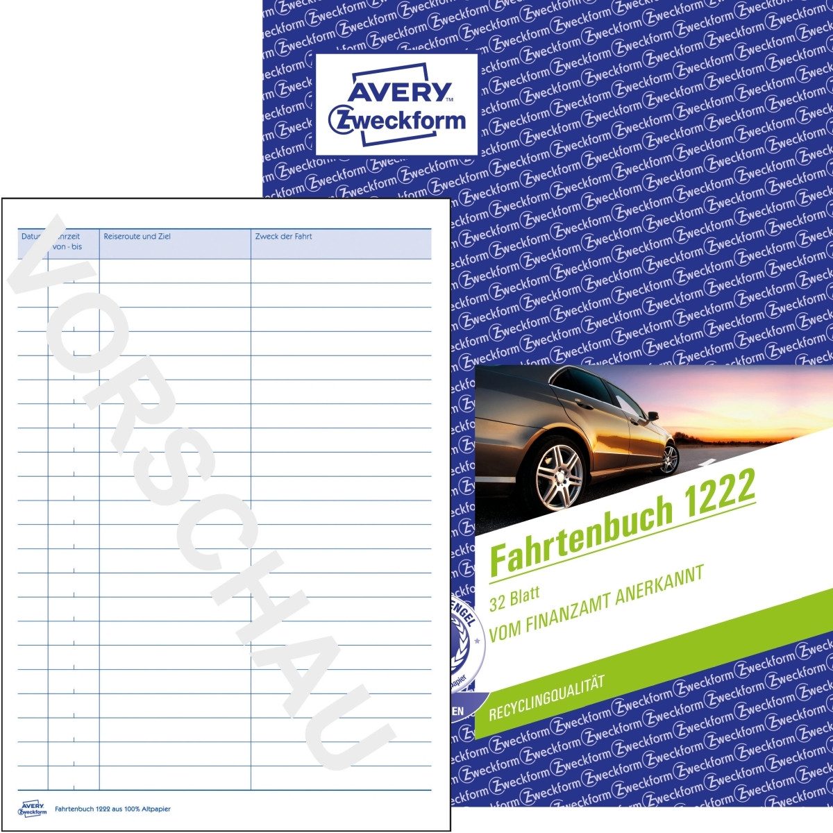 Avery Zweckform Formularblock Formularbuch Fahrtenbuch A5 RC PKW 32 Blatt mit Ausfüllhilfe
