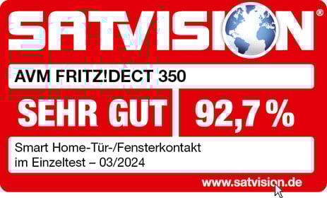 Der AVM Fritz!Dect 350 erzielt im Vergleichstest des Magazins „Satvision“ das Gesamtergebnis „SEHR GUT (92,7 %)“. Das Gerät ist sehr einfach einzurichten und zu installieren. Es ist auch sehr leicht zu bedienen. Außerdem punktet die hohe Kompatibilität. Insgesamt ist der smarte magnetische Tür-/Fensterkontakt ein „vielseitiger Alltagshelfer“ und eine „äußerst lohnenswerte“ Investition..