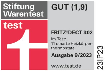 Das Magazin „test“ der „Stiftung Warentest“ prüft das AVM FritzDect 302 im Vergleich mit insgesamt elf smarten Heizkörperthermostaten. Die „sehr gute“ Raumtemperaturregelung überzeugt. Das Montieren, Inbetriebnehmen, Bedienen und Warten ist einfach. Außerdem ist der solide Basisschutz persönlicher Daten vergleichsweise am besten. Mit dem Gesamtergebnis „GUT (1,9)“ erreicht der Thermostat Platz zwei und ist der „PREISTIPP“.