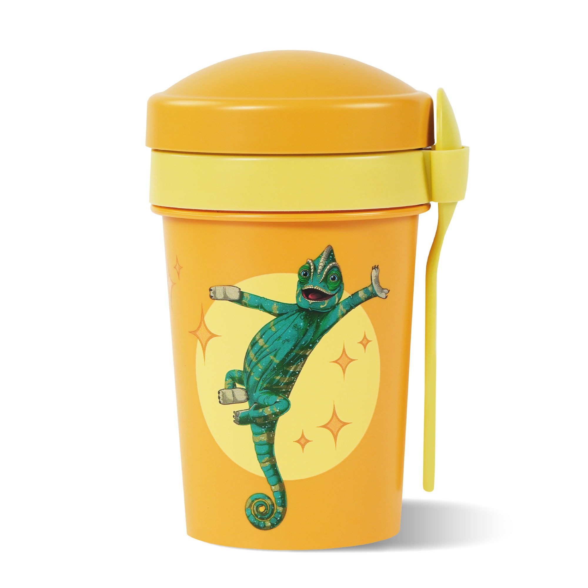 Lieferumfang | Lieferumfang: 1x Müslibecher To Go, Höhe: ca. 16 cm, Füllmenge gesamt: ca. 540 ml, 1 Bechereinsatz, Höhe ca. 12,5 cm, Füllmenge: ca. 360 ml, 1 Löffel Farbe: Gelb (Caspar) Material: Recycelte PET Flaschen (rPET). Auslaufsicher. Für Joghurt, Müsli, Milch, Früchte, Suppe u. v. m. geeignet |