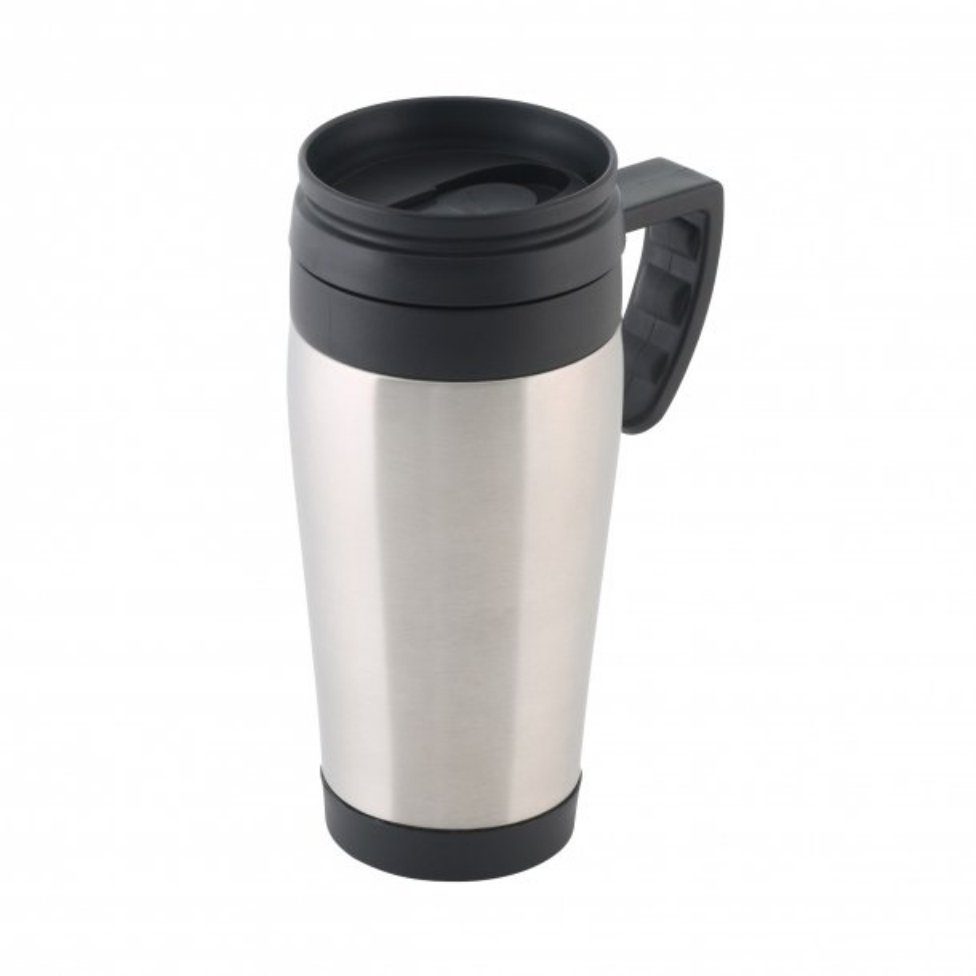 Doppelwandiger Isolierbecher zum Genießen von Heißgetränken, Inhalt bleibt länger warm, praktisch für Zuhause und unterwegs, z. B. auf Autofahrten Mit handlichem Henkelgriff und praktischem Deckel mit aufschiebbarer Trinköffnung, somit kann ein Verschütten vermieden werden Aus Edelstahl und Kunststoff (PP), Farbe: silberfarben, Deckel und Griff, Farbe: schwarz, attraktives Design in schlanker Form Bestens geeignet für Tee, Kaffee, Kakao oder sonstige Heißgetränke, praktischer Begleiter auch für Camping, Festival usw. Maße: ca. 12,5 x 18,5 x 8,5 cm, Fassungsvermögen: ca. 400 ml, Gewicht: ca. 178 g