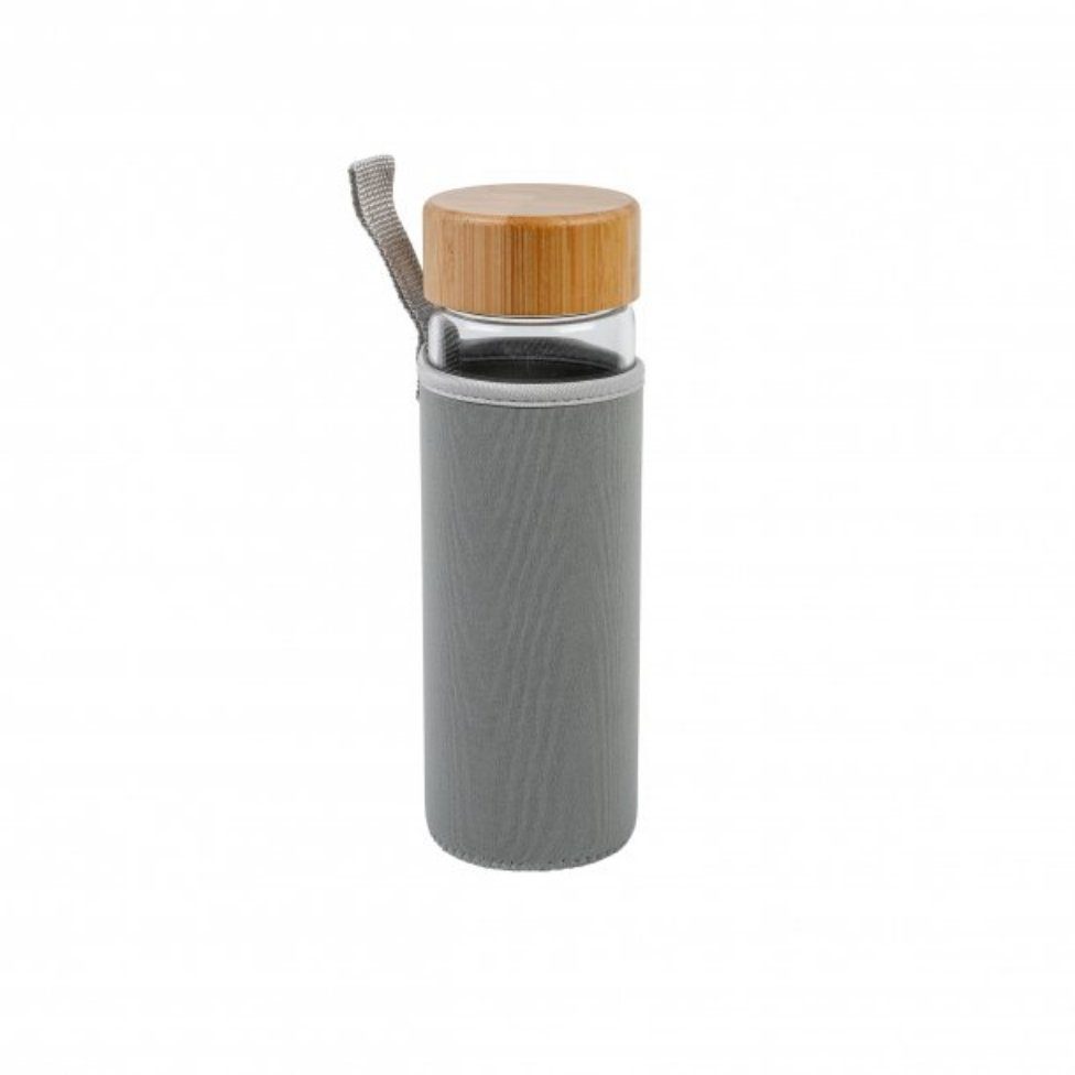 Moderne Trinkflasche aus Glas mit Schraub-Deckel und schützender Neoprenhülle mit praktischer Tragelasche – ideal als Mehrwegflasche für unterwegs Isolierender Neopren-Mantel sorgt dafür, dass heiße Flüssigkeiten in der Flasche länger warm und kalte länger kühl bleiben – guter Rundumschutz, angenehme Haptik Aus robustem Borosilikatglas, Schraubverschluss aus Bambus, Farbe: holzfarben – mit Neoprenbezug in Grau, per Handwäsche zu reinigen Perfekter Begleiter zum Sport, auf Reisen oder im Büro, auch für Schulpausen, Picknicks oder auf Autofahrten im Getränkehalter geeignet – mit großer Öffnung, einfach nachfüllbar Maße: Ø ca. 6,6 cm, Höhe ca. 20 cm, Fassungsvermögen ca. 420 ml, Gewicht: ca. 335 g