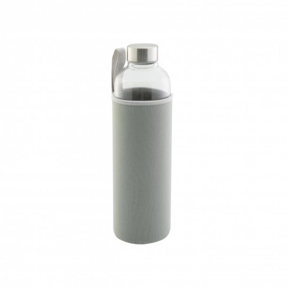 Moderne Trinkflasche aus Glas mit Schraub-Deckel und schützender Neoprenhülle mit praktischer Tragelasche – ideal als Mehrwegflasche für unterwegs Isolierender Neopren-Mantel sorgt dafür, dass heiße Flüssigkeiten in der Flasche länger warm und kalte länger kühl bleiben – guter Rundumschutz, angenehme Haptik Aus robustem Borosilikatglas, Schraubverschluss aus Edelstahl, leicht zu reinigen, mit Neoprenbezug in Grau Perfekter Begleiter zum Sport, auf Reisen oder im Büro, auch für Schulpause, Picknick oder auf Autofahrten im Getränkehalter geeignet – mit großer Öffnung, einfach nachfüllbar Maße: Ø ca. 6,6 cm, Höhe ca. 21 cm, Fassungsvermögen ca. 500 ml, Gewicht: ca. 324 g