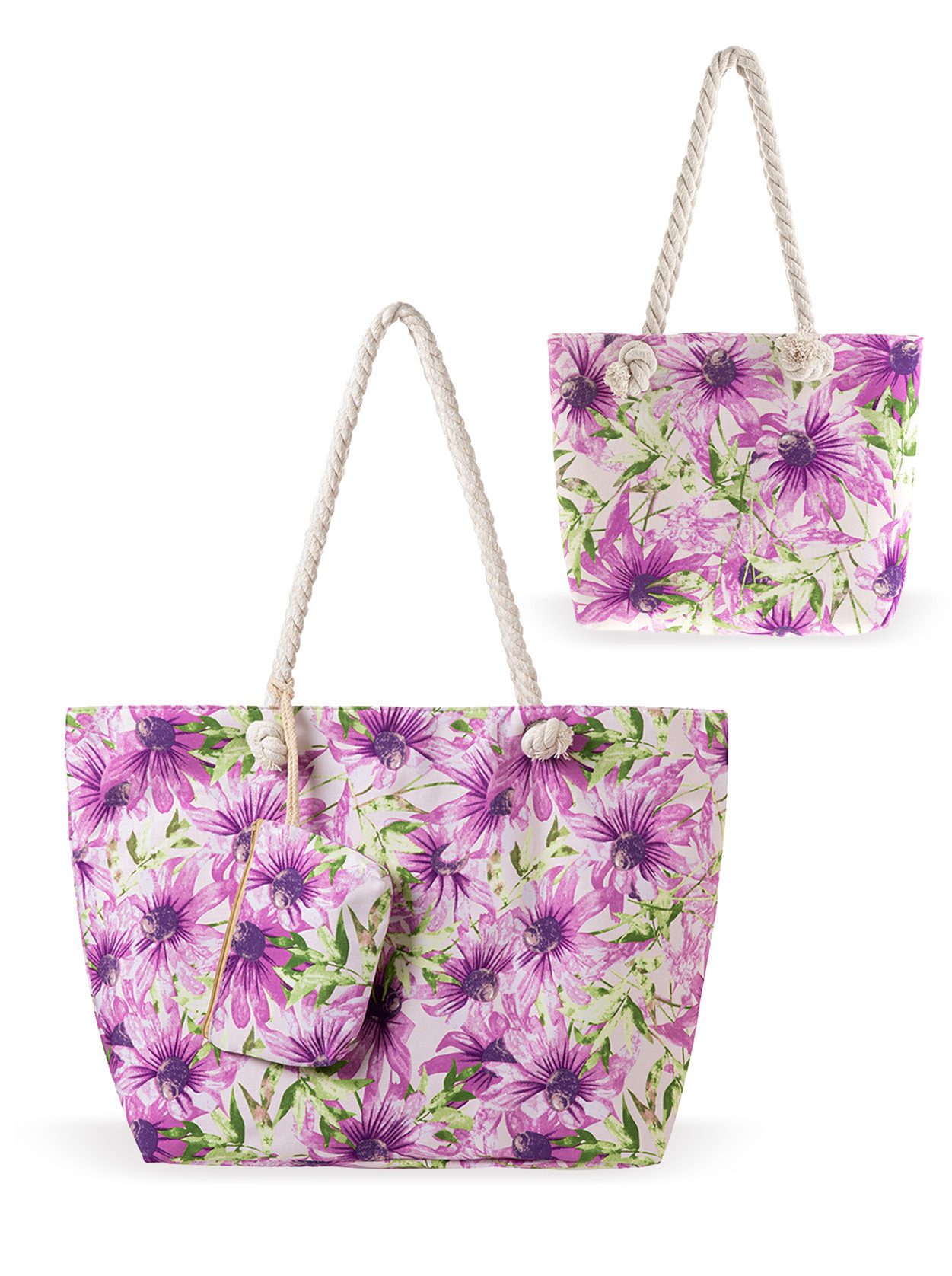 Produktdetails:Große Strandtasche (für Erwachsene): • Maße: Длина 57 cm x Höhe 35 cm x Breite 16 cm • Material: 100% Polyester – leicht und robust • Verschluss: Reißverschluss für sicheres Verstauen • Extras: Inklusive kleiner Extra-Tasche im gleichen Design (Maße: 18,5 cm x 13 cm x 1 cm) – perfekt für Schlüssel, Geld und Handy • Design: Farbintensive, tropisch inspirierte Blumenmuster in Blau- oder Lilatönen • Pflegehinweis: Handwäsche • Einsatzbereiche: Ideal für Strand, Pool, Sauna, Fitnessstudio, Reisen, Shopping, Picknick oder Yoga Kinder-Strandtasche (für Mädchen 4–8 Jahre): • Maße: Breite 33 cm x Höhe 25 cm x Tiefe 9 cm • Material: 100% Polyester – federleicht und angenehm zu tragen • Verschluss: Reißverschluss für sicheren Halt der Gegenstände • Träger: Gedrehte Seil-Schulterriemen mit einem Umfang von 47 cm – bequem und kindgerecht • Design: Farbfröhliches, tropisches Muster abgestimmt auf die große Tasche • Pflegehinweis: Handwäsche • Einsatzbereiche: Perfekt für Strand, Ausflüge, Urlaub oder kleine Shoppingtouren