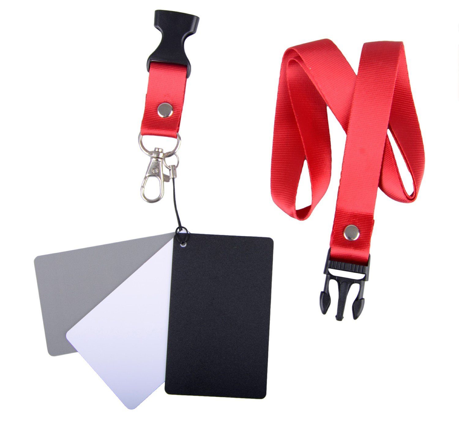 Dieses praktische Set enthält drei stabile Kunststoff-Karten für den manuellen Farbabgleich und die Messung der korrekten Belichtung.