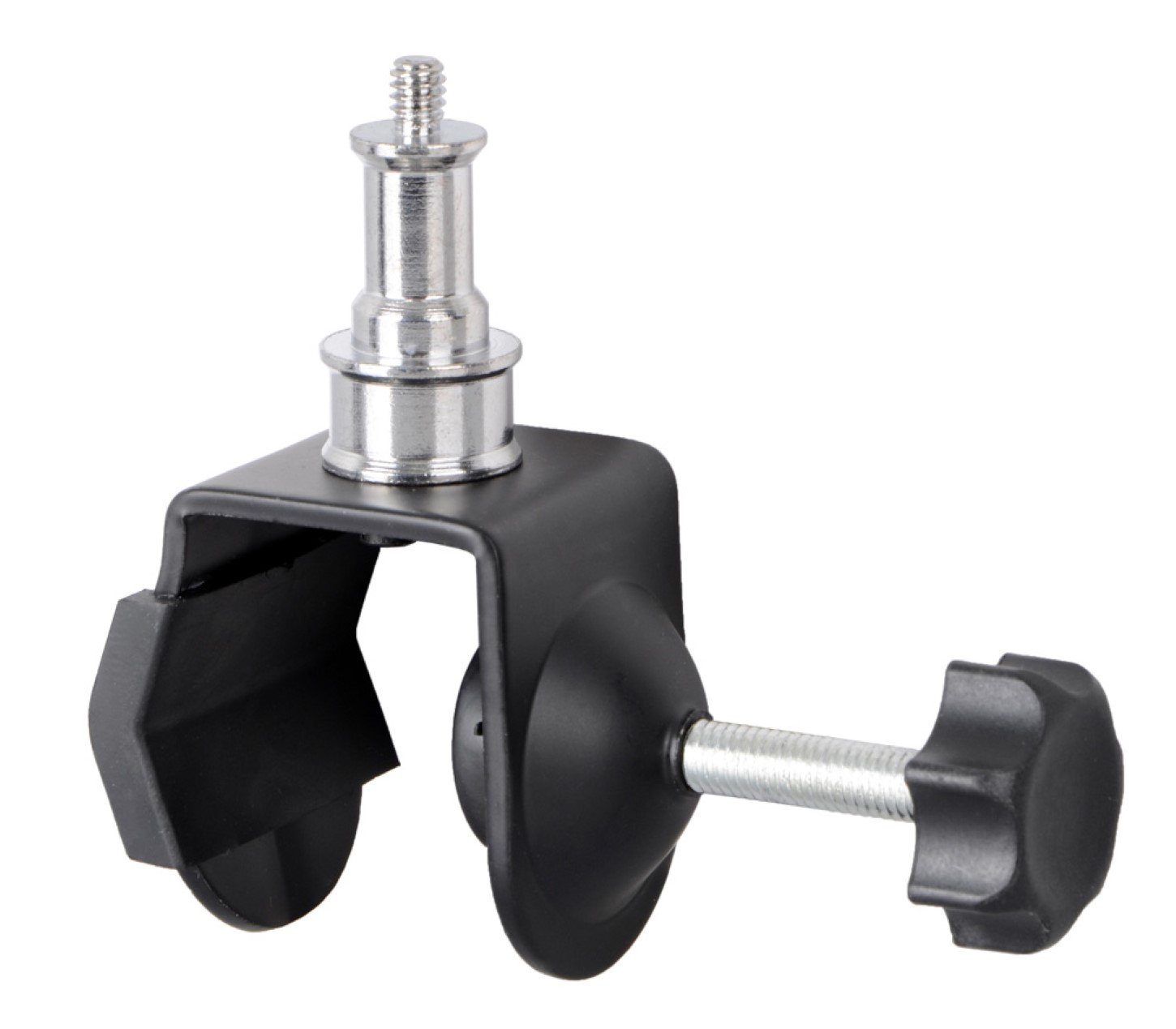 Mit dieser Schraubzwinge lässt sich diverses Kamerzubehör an Stangen, Rohren, Tischplatten usw. befestigen. Blitzgerät, Lampe, Kugelkopf und anderes Equipment mit Spigotanschluss oder 1/4 Zoll Standardgewinde werden einfach auf dem Adapter angebracht und am gewünschten Platz festgeschraubt.
