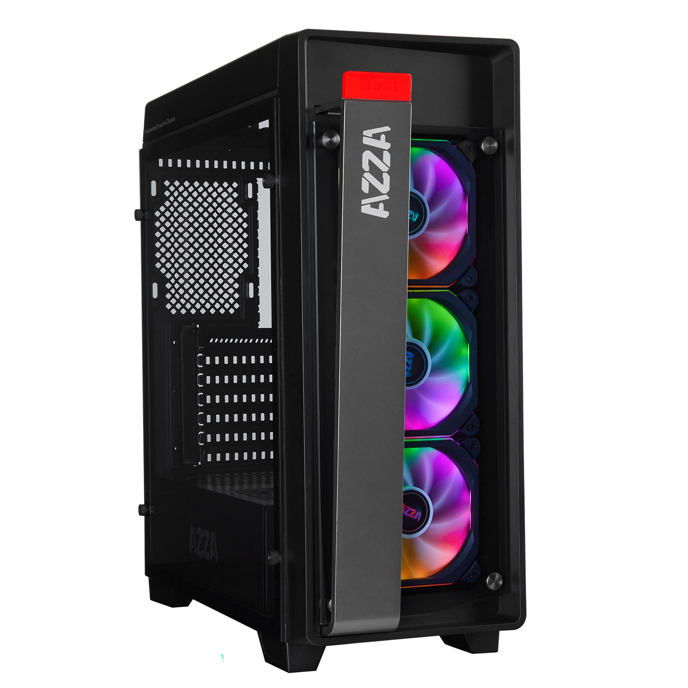 AZZA Gaming-Gehäuse Obsidian 270, Formfaktor: ATX, Tempered Glass, 3x aRGB Lüfter, Headset-Halter