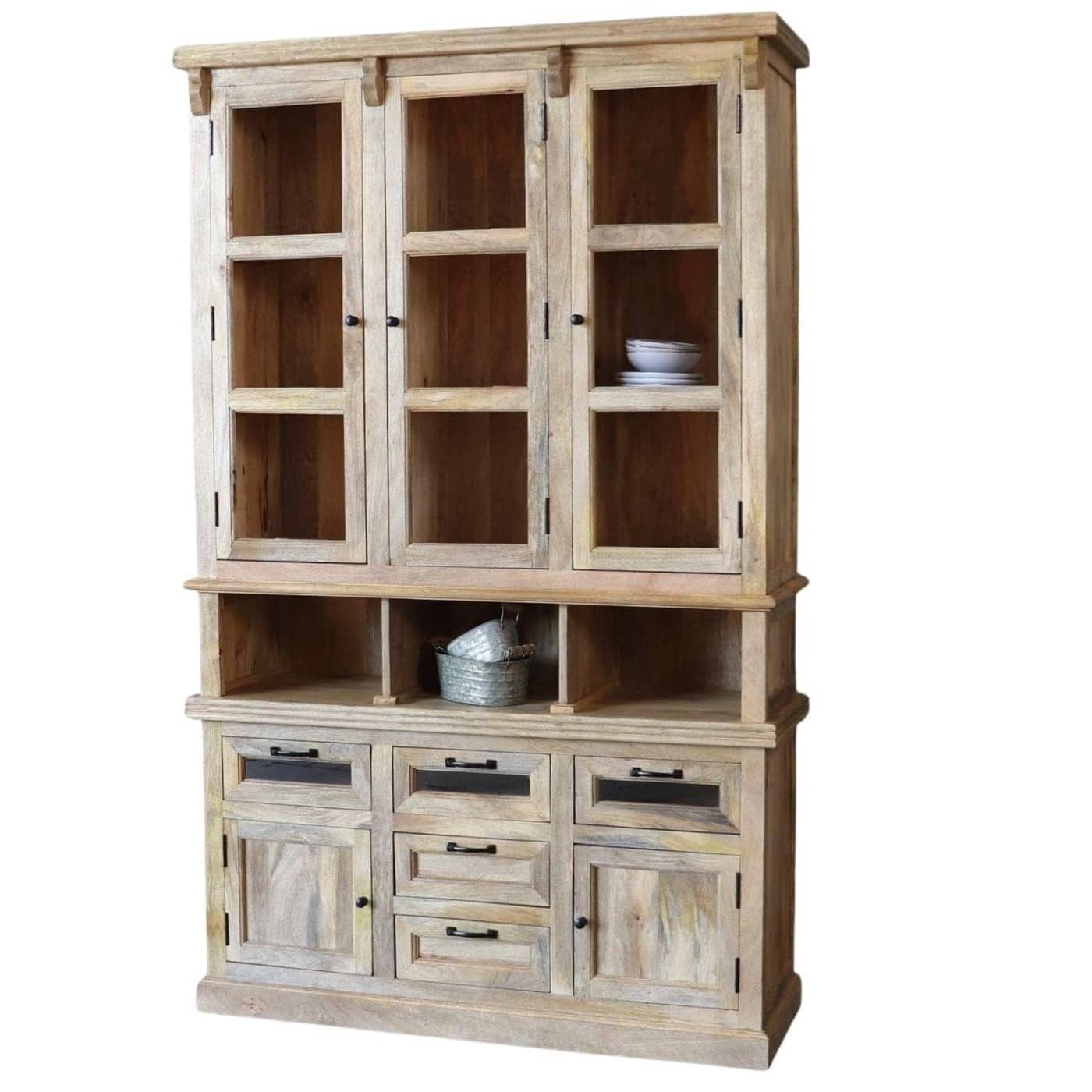 Liebe zum Detail wird bei diesem beeindruckenden Vitrinenschrank aus massivem, edlen Mangoholz zum Motto. Beste Materialien, die Liebe zum Detail, das exklusive Design sowie die Formgebung bezaubern. Der edle Geschirrschrank besteht aus Ober- und Unterschrank und wird in zwei Teilen geliefert. Dieses absolute Prachtstück an Geschirrschrank ist in Massivbauweise hergestellt.