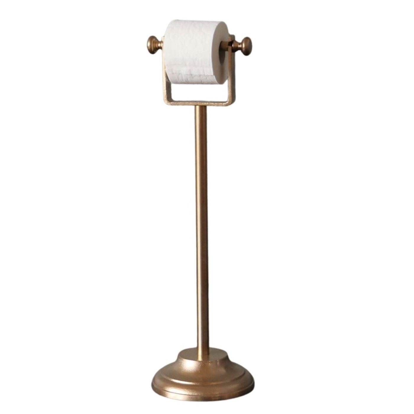 Das zeitlose Design dieses stehenden Toilettenpapierhalters überzeugt auf ganzer Linie. Gefertigt in Handarbeit aus Aluminium wurde aufwendig ein schönes Antik-Finish angebracht. Die hochwertige Qualität sowie die stabile Standfestigkeit begeistern. Ein Designaccessoire für Ihr hochwertiges Badezimmer das elegant und sehr charmant wirkt.