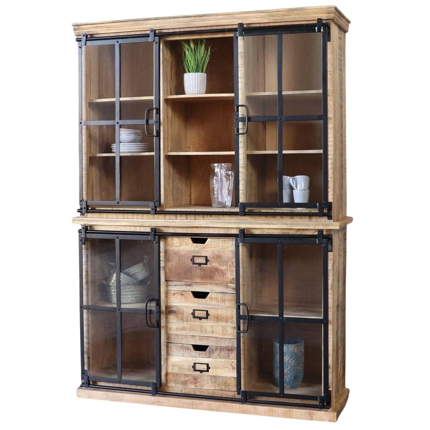 Dieser Wandschrank wird Sie durch die massive Verarbeitung auf ganzer Linie begeistern! Absolut robust, zeitlos schön und extravagant im Design. Dieser prachtvolle Vitrinenschrank bietet ausreichend Stauraum für sämtliche Utensilien. Feine Metallbeschläge und die schön gestalteten Schiebetüren hinterlassen Eindruck ! Insgesamt 3 Schubladen sowie diverse Einlegeböden sorgen für Ordnung und ausreichend Präsentationsfläche. Werten Sie Ihre Einrichtung mit diesem praktischen Design-Schrank auf. Das edle Massivholz wurde mit einem feinen Antik-Finish veredelt. Sämtliche Maserungen sind naturbelassen und machen jedes einzelne Stück zu einem prachtvollen Unikat.