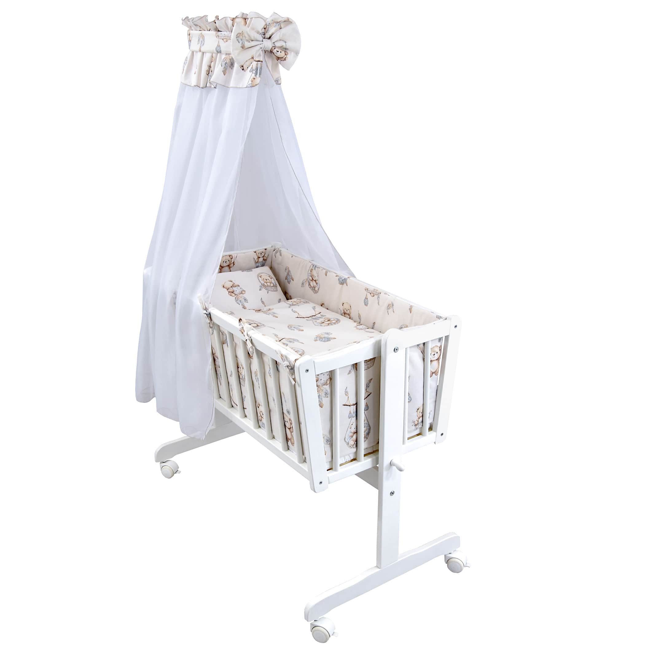 Unser Komplettwiegenset umfasst nicht nur die Wiege selbst, sondern auch eine Fülle von Zubehör, um einen himmlischen Schlafplatz zu schaffen. Die Schaumstoffmatratze mit abnehmbarem und waschbarem Bezug bietet optimalen Liegekomfort und lässt sich leicht pflegen. Die hypoallergenen Kissen und Decken sorgen für eine gesunde und gemütliche Schlafumgebung, während das Nestchen mit Stickerei und der zarte Chiffonhimmel für eine romantische Atmosphäre im Kinderzimmer sorgen.