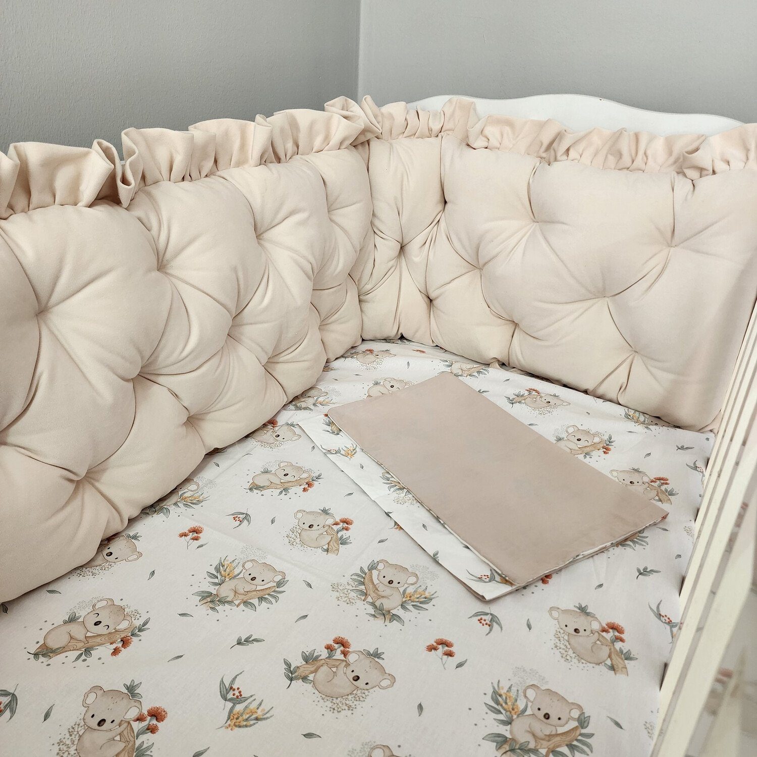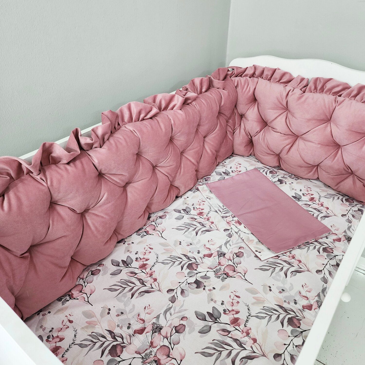 Materialzusammensetzung | Bettwäsche: 100% Baumwollstoffe, antiallergen, Bettumrandung: Samt Füllmaterial aus Polyesterhohlfaser |