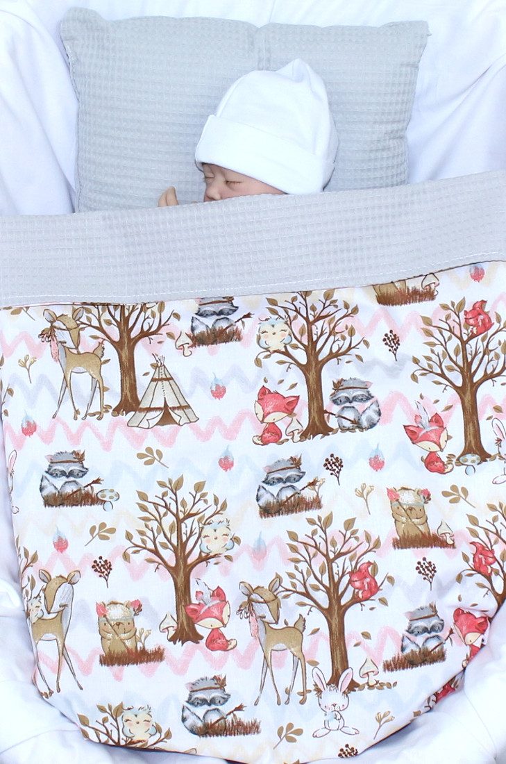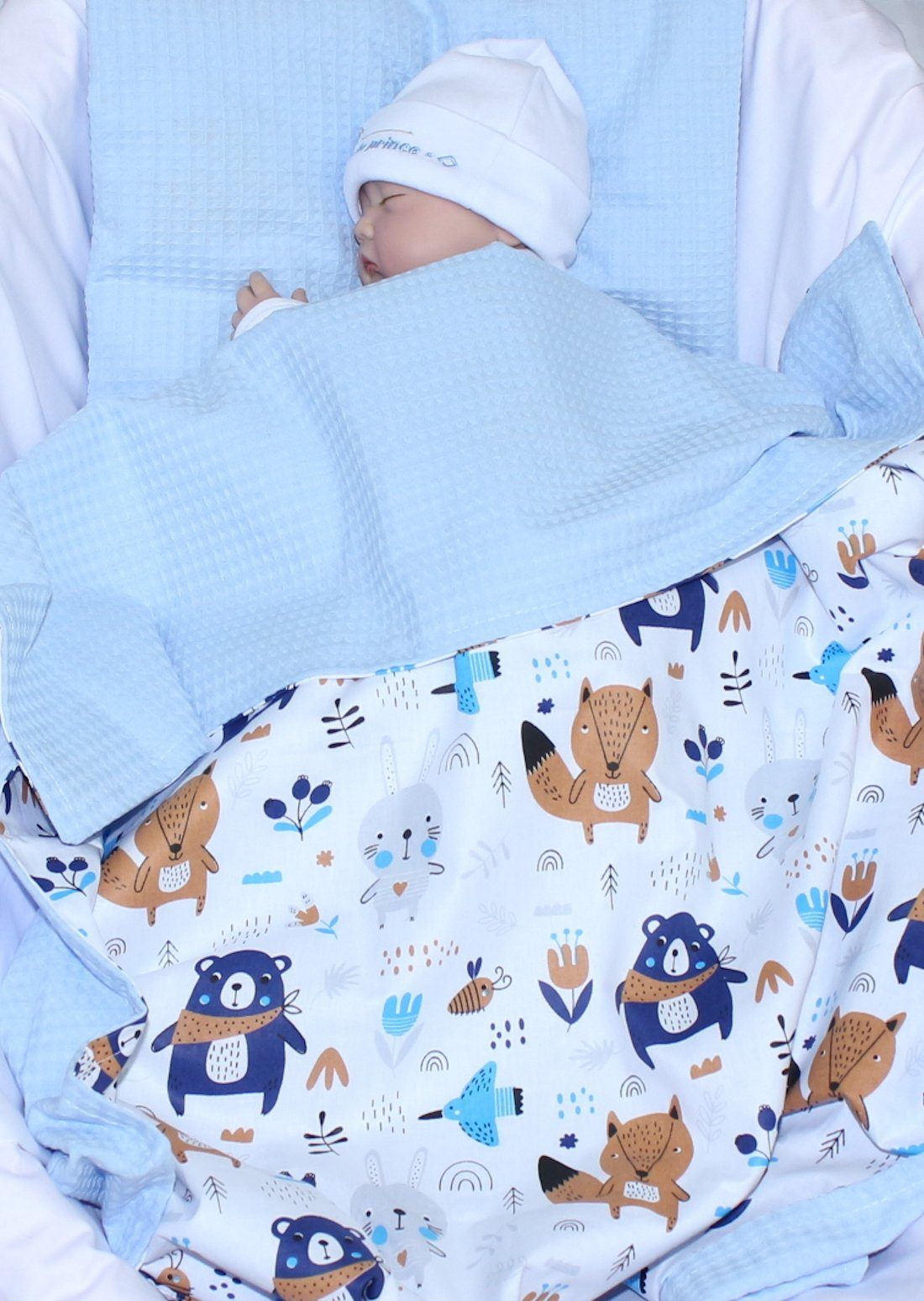 Kuschelige Babydecke aus Waffelpiqué mit Motiv Baumwollstoff