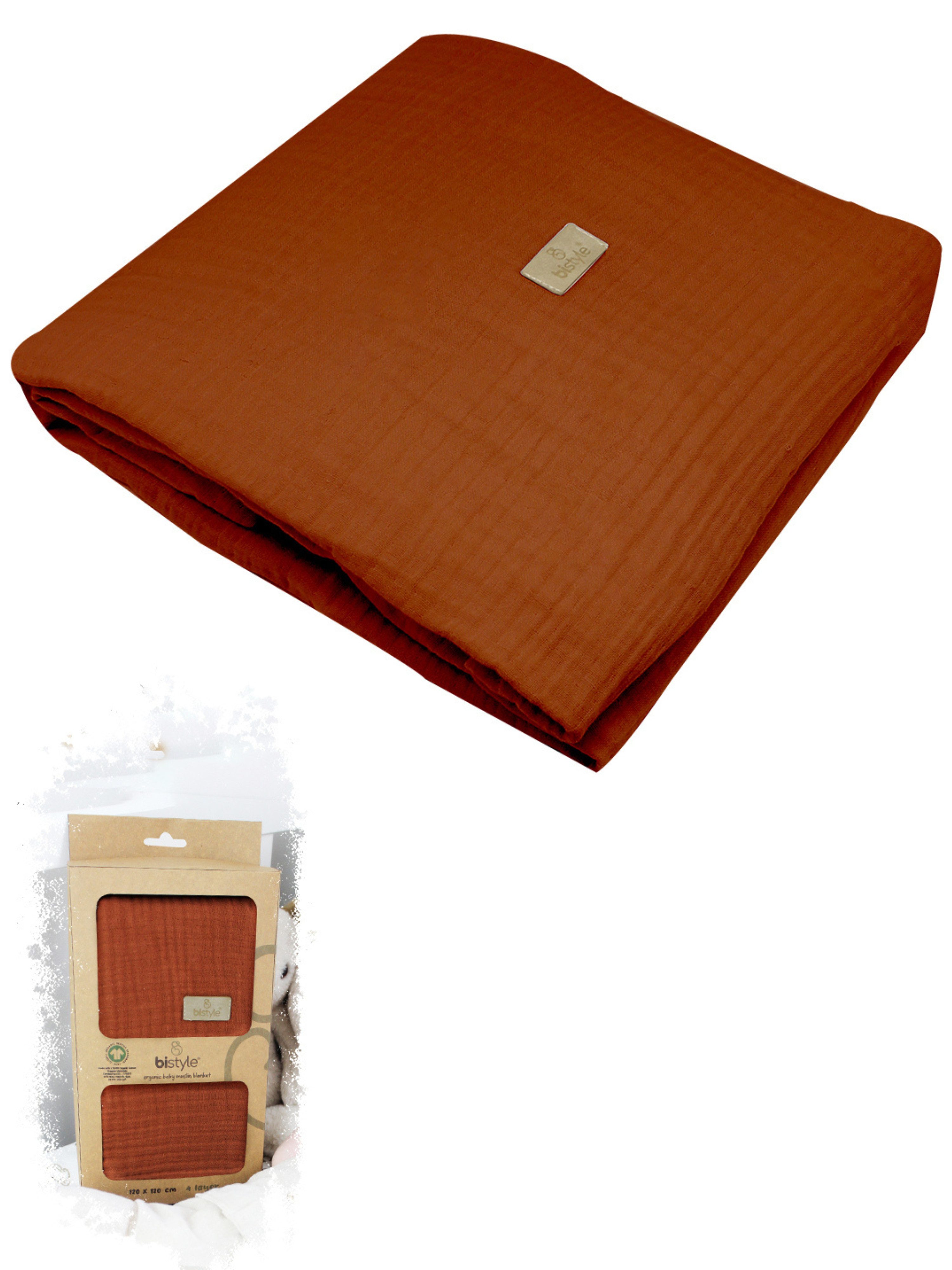 Diese hochwertigen Musselin-Babydecken aus 100 % Bio-Baumwolle in der Размер 120x120cm mit GOTS-Zertifizierung sind der perfekte Begleiter für dein Baby – weich, atmungsaktiv und vielseitig einsetzbar. Die Decken sind in den Farben: Beige, Senfgelb, Rostrot, Ecru, Anthrazit und Stone erhältlich. Diese harmonischen Farbtöne bringen einen Hauch von Wärme und Gemütlichkeit ins Kinderzimmer. Die Decken überzeugen durch ihre weiche, 4-lagige Musselin-Qualität, die sich sanft an Babys Haut schmiegt. Sie sind atmungsaktiv, temperaturausgleichend und sorgen für ein angenehmes Gefühl – ideal für zu Hause oder unterwegs. Dank der GOTS-Zertifizierung kannst du sicher sein, dass diese Decken unter strengen ökologischen und sozialen Kriterien hergestellt wurden – für ein gutes Gefühl und eine nachhaltige Wahl!