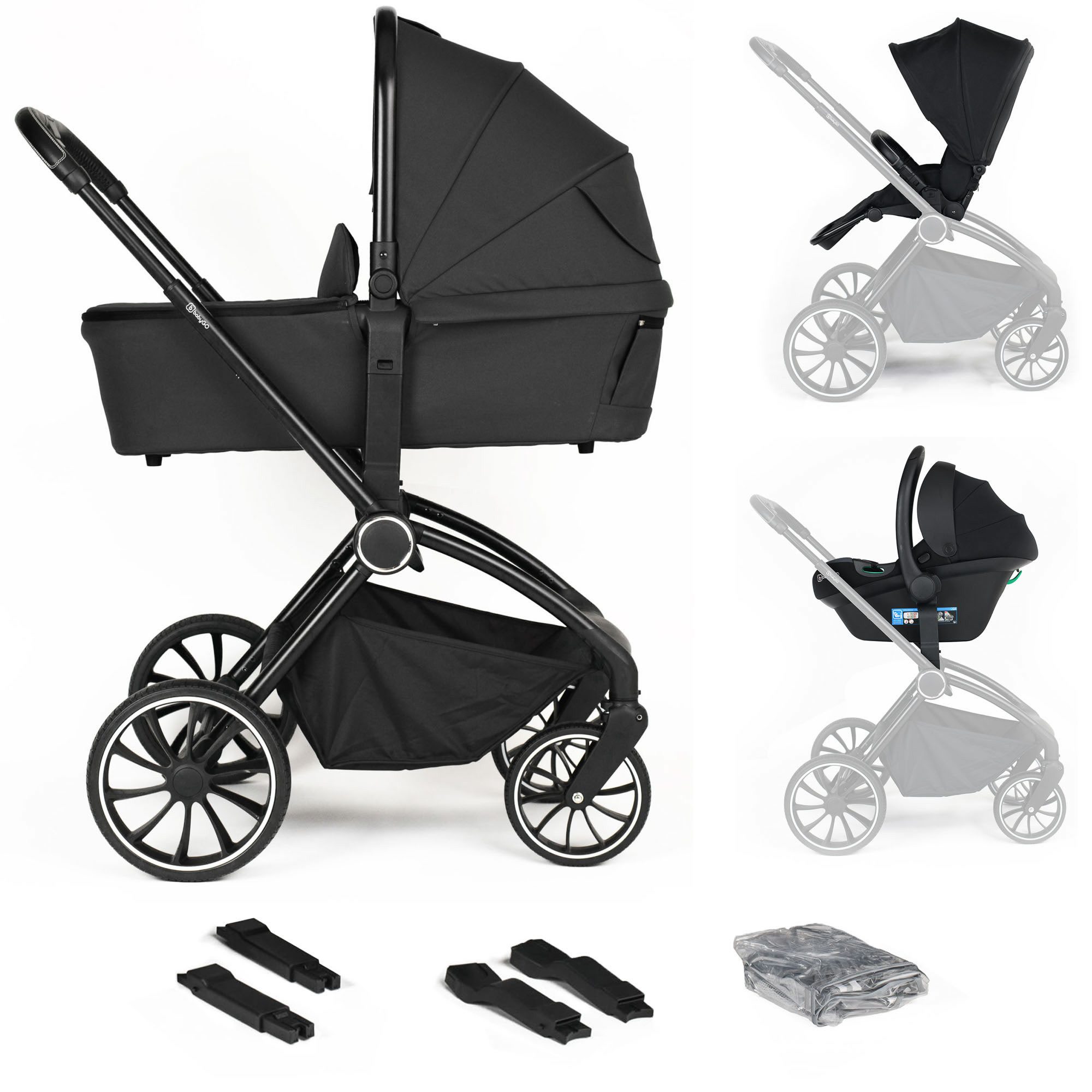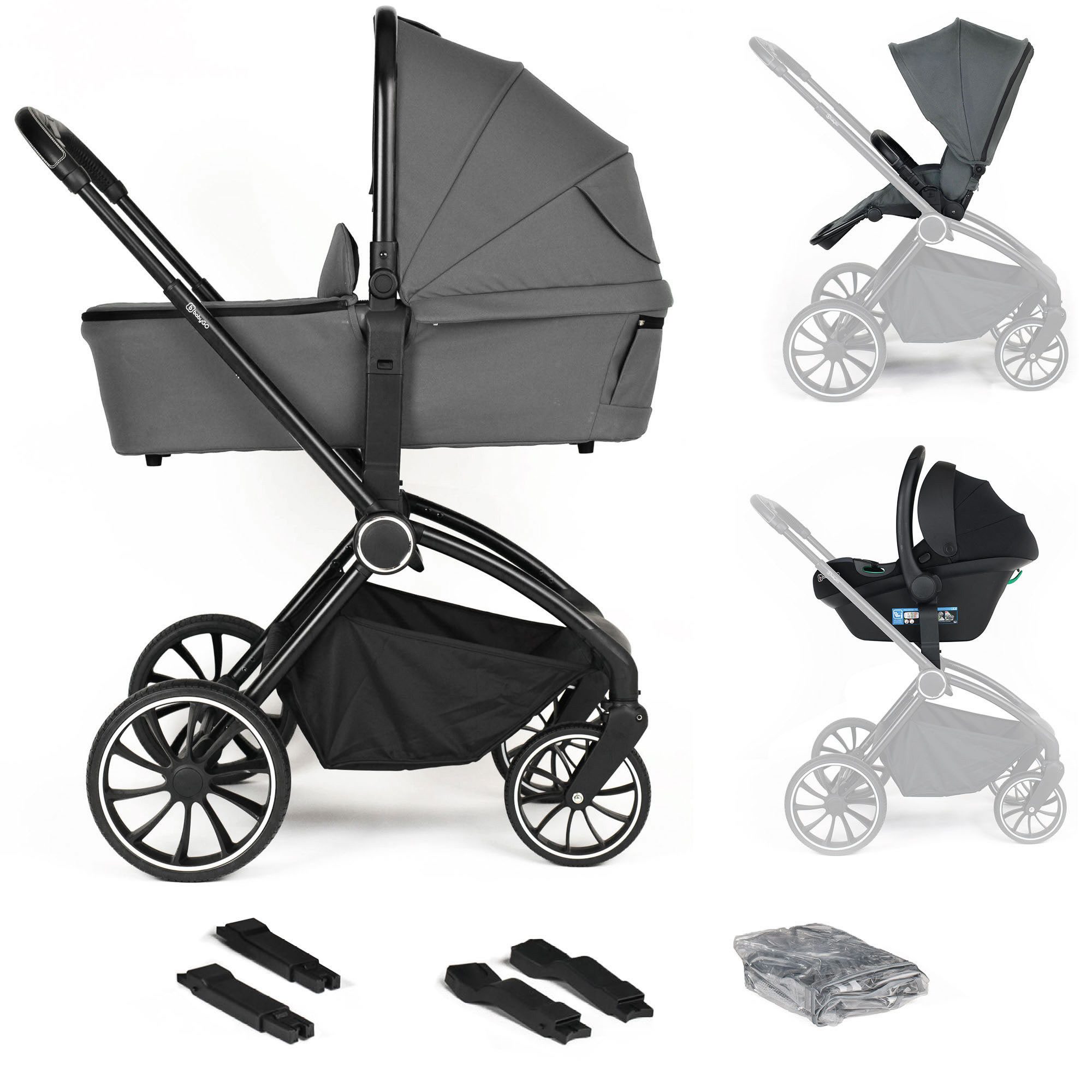 Lieferumfang | Gestell mit Rädern Babywanne Sportwagenaufsatz Babyschale und Adapter Sonnenverdeck Regenschutz Einkaufskorb Bedienungsanleitung |