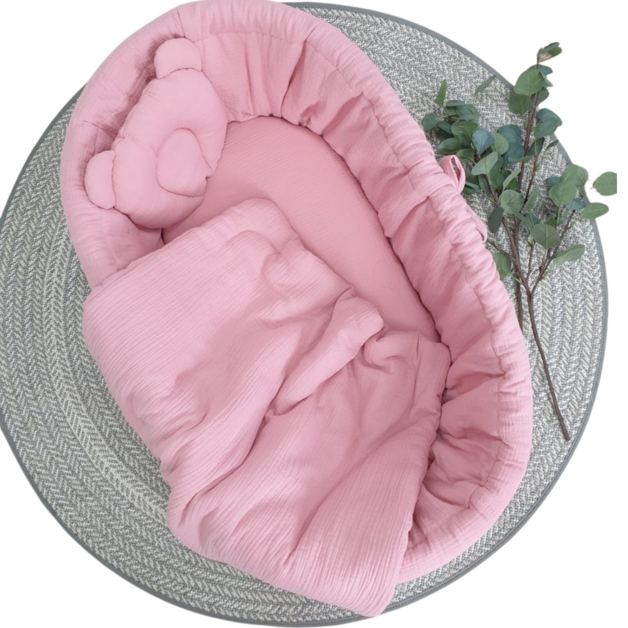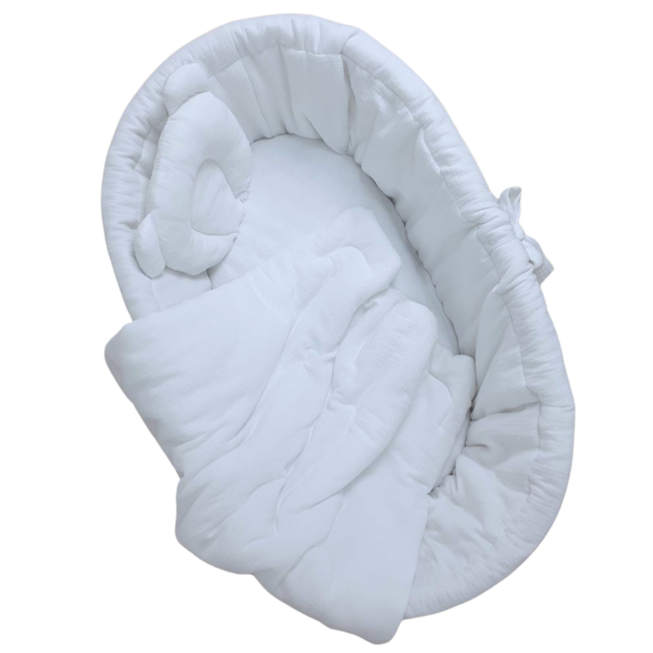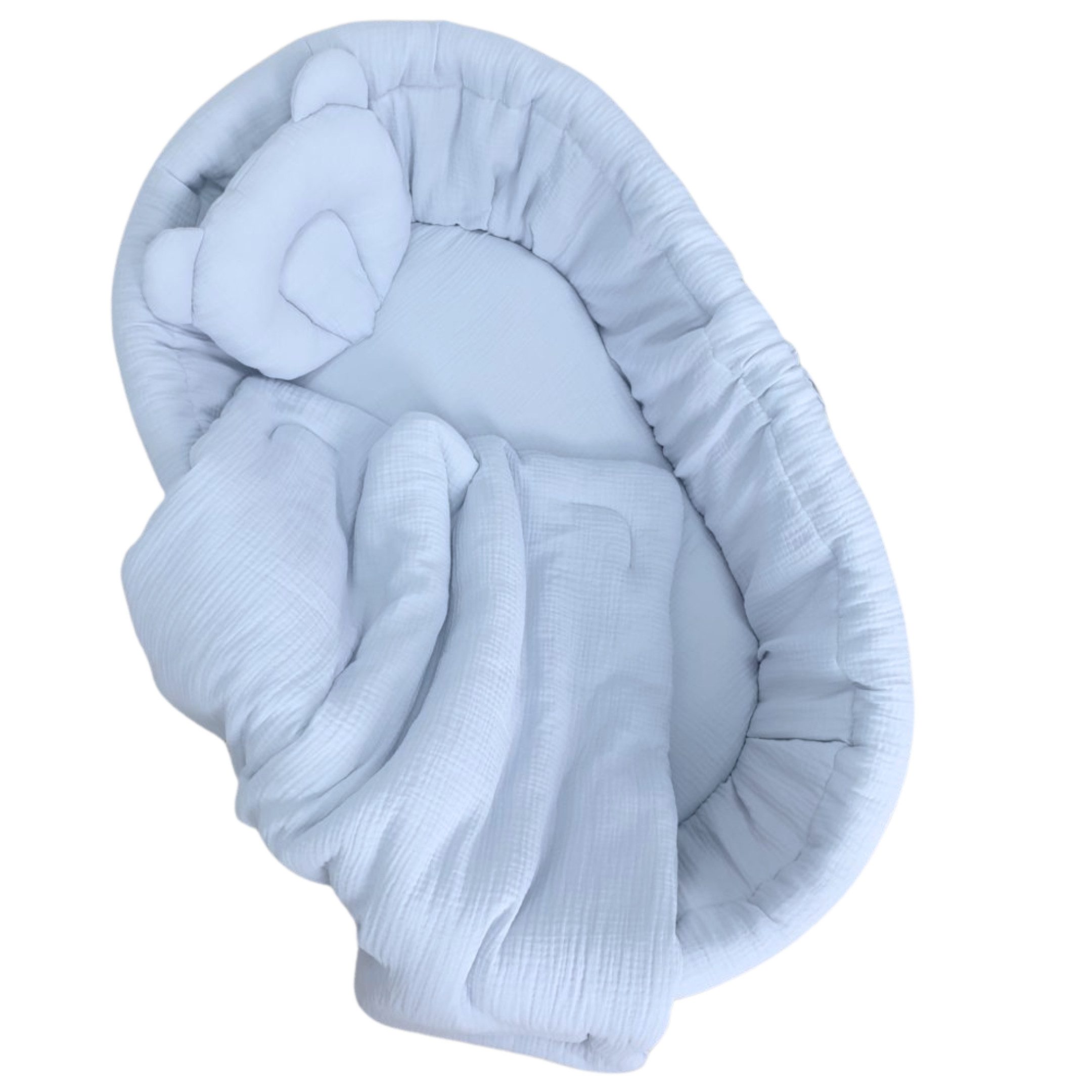 SET: 4-teilige Ausstattung aus Musselin Stoff umfasst Kissen, Decke, Textile Ausstattung/Nestchen und Spannbetttuch