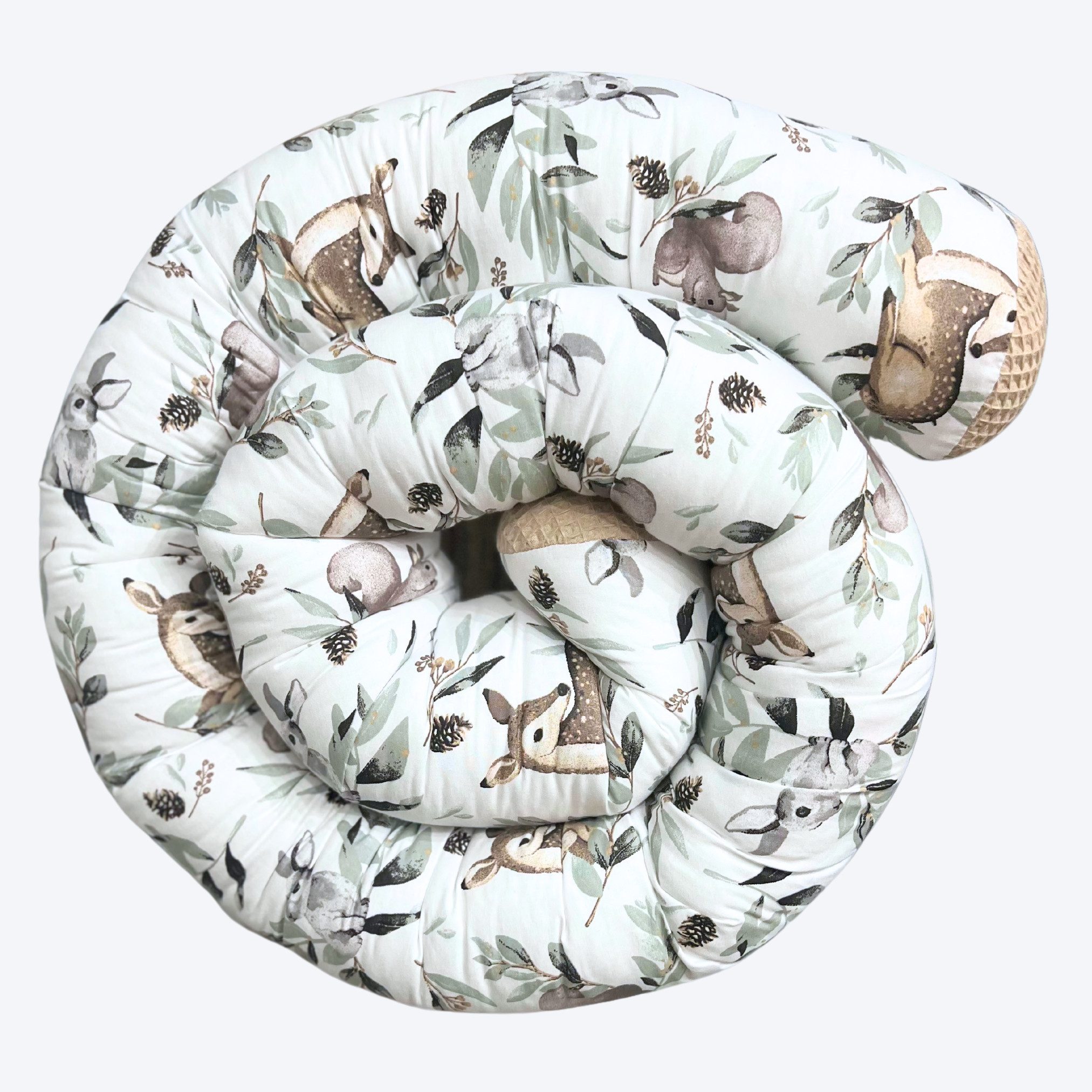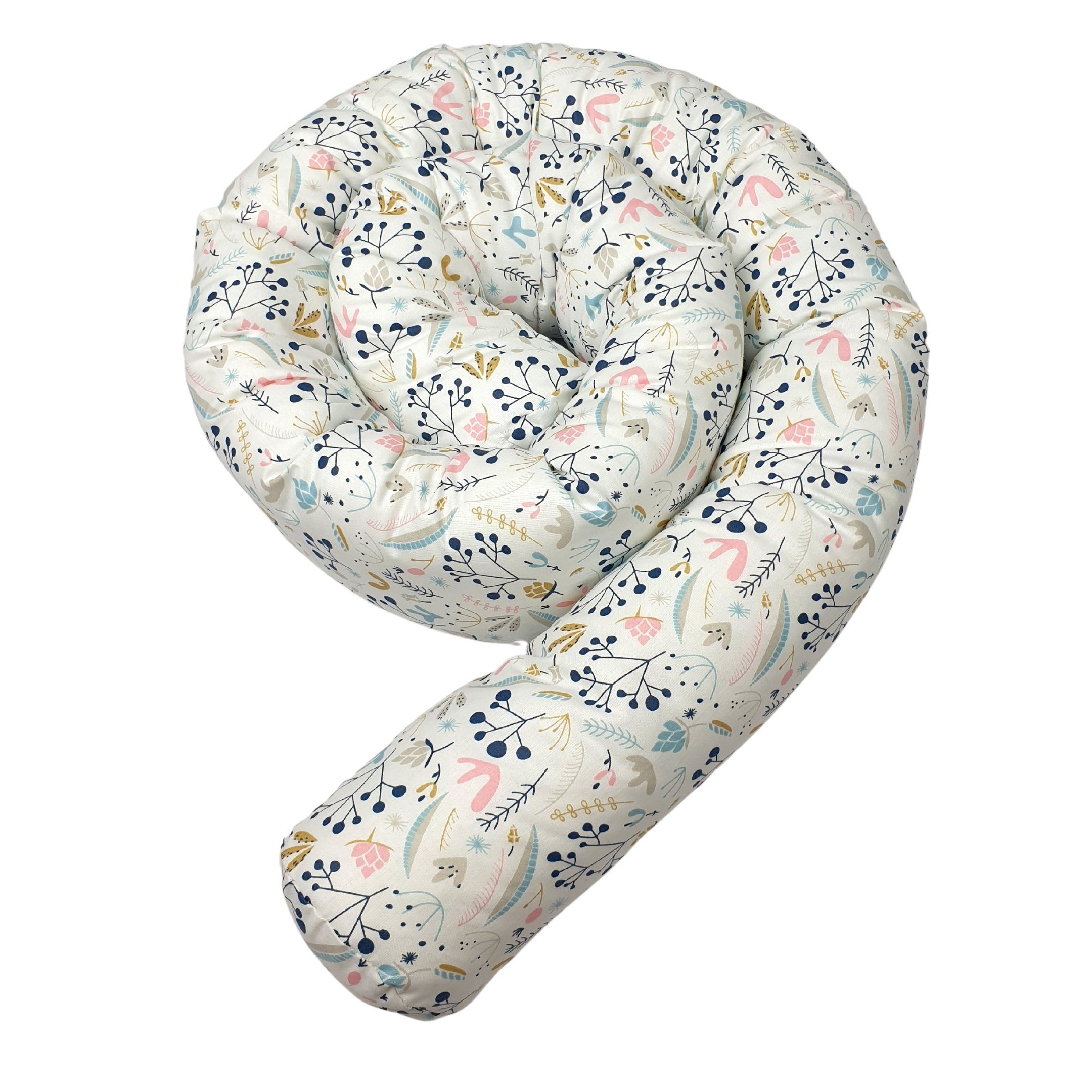 Gönnen Sie Ihrem Baby den Komfort und die Sicherheit, die es verdient. Unsere Nestchenschlange ist mehr als nur ein Produkt – sie ist ein Begleiter auf den ersten Abenteuern Ihres Babys. Die Babymajawelt® Nestchenschlange ist eine vielseitig verwendbare Bettrolle, die sich ideal für Babys ab der Geburt eignet. Mit einer Длина von 210 cm und einem Durchmesser von 11 cm ist die Bettrolle ideal für verschiedene Verwendungszwecke geeignet. Hergestellt aus weicher Baumwolle mit antiallergischer Polyesterfüllung bietet sie optimalen Komfort und Sicherheit für Ihr Baby. Die Bettrolle kann als Verkleinerung im Babybett verwendet werden, um für Geborgenheit zu sorgen und ein Herausrollen zu verhindern. Auch als Liege-Spielfläche auf dem Boden ist sie perfekt geeignet, um Ihrem Baby einen sicheren und gemütlichen Platz zum Spielen zu bieten. Darüber hinaus kann die Bettrolle als Seitenschläferrolle genutzt werden, um Babys in der Seitenlage zu unterstützen, oder im Haushalt als Zugluft Stopper dienen. Die Wickeltischumrandung der Bettrolle erhöht die Sicherheit beim Wickeln, indem sie verhindert, dass Ihr Baby von der Wickelauflage rollt. So schaffen Sie einen geschützten und sicheren Wickelplatz für Ihr Kleines. Die Füllung der Bettrolle passt sich ideal der Körperform an, ist geräuschlos und speichert Wärme für zusätzlichen Komfort. Das Obermaterial der Bettrolle besteht zu 100% aus Baumwolle und die Füllung aus 100% antiallergischem Polyester. Der Stoff ist glatt und verfügt über ein zauberhaftes Muster mit Waffelstruktur. Die Bettrolle ist Maschmaschinen geeignet bei 30°C und wird inklusive praktischer Tragetasche geliefert.