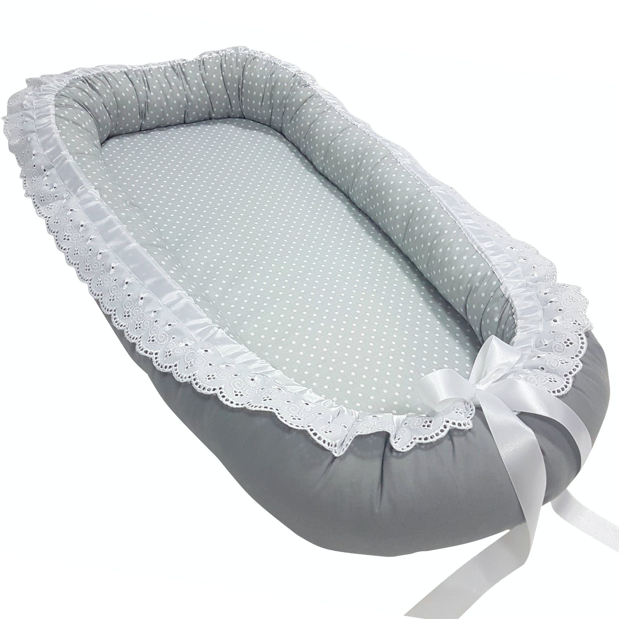 Das Babynest Romantic von Babymajawelt ist ein multifunktionales Nestchen für Babys. Es ist beidseitig verwendbar und hat Details aus Spitze und Satin. Dadurch verleiht es dem Nestchen eine besondere Stimmung. Das Nestchen ist ideal als Reisebett, Schutz im Elternbett, Verkleinerung im Babybett oder Liege-Spielfläche auf dem geeigneten Boden. Dank der mitgelieferten Matratze ist es auch im Urlaub oder auf Reisen ein bequemer Schlafplatz für Ihr Baby. Die Matratze lässt sich herausnehmen, sodass Sie das Nestchen auch als reines Schutznest verwenden können. Dank der verstellbaren Bänder lässt sich das Nestchen in der Breite und Длина verkleinern oder vergrößern. So können Sie es an die Размер Ihres Babys anpassen. Das Babynest ist umhüllt von allen Seiten, sodass Ihr Baby sicher überall schlafen kann, ohne auszurollen. Babynest -Produkt des Jahres - fürs Schlafen zwischendurch und nicht nur. Insbesondere für den Schlaf in den ersten Lebensmonaten geeignet. Ein toller Begleiter für Eltern in den ersten Babyjahr. Umgehüllt von allem Seiten, kann Ihr Baby sicher überall schlafen, ohne auszurollen Außen Gr. 90x55 cm (+/- 2 cm), Innen Gr.65x33 (+/- 2 cm)