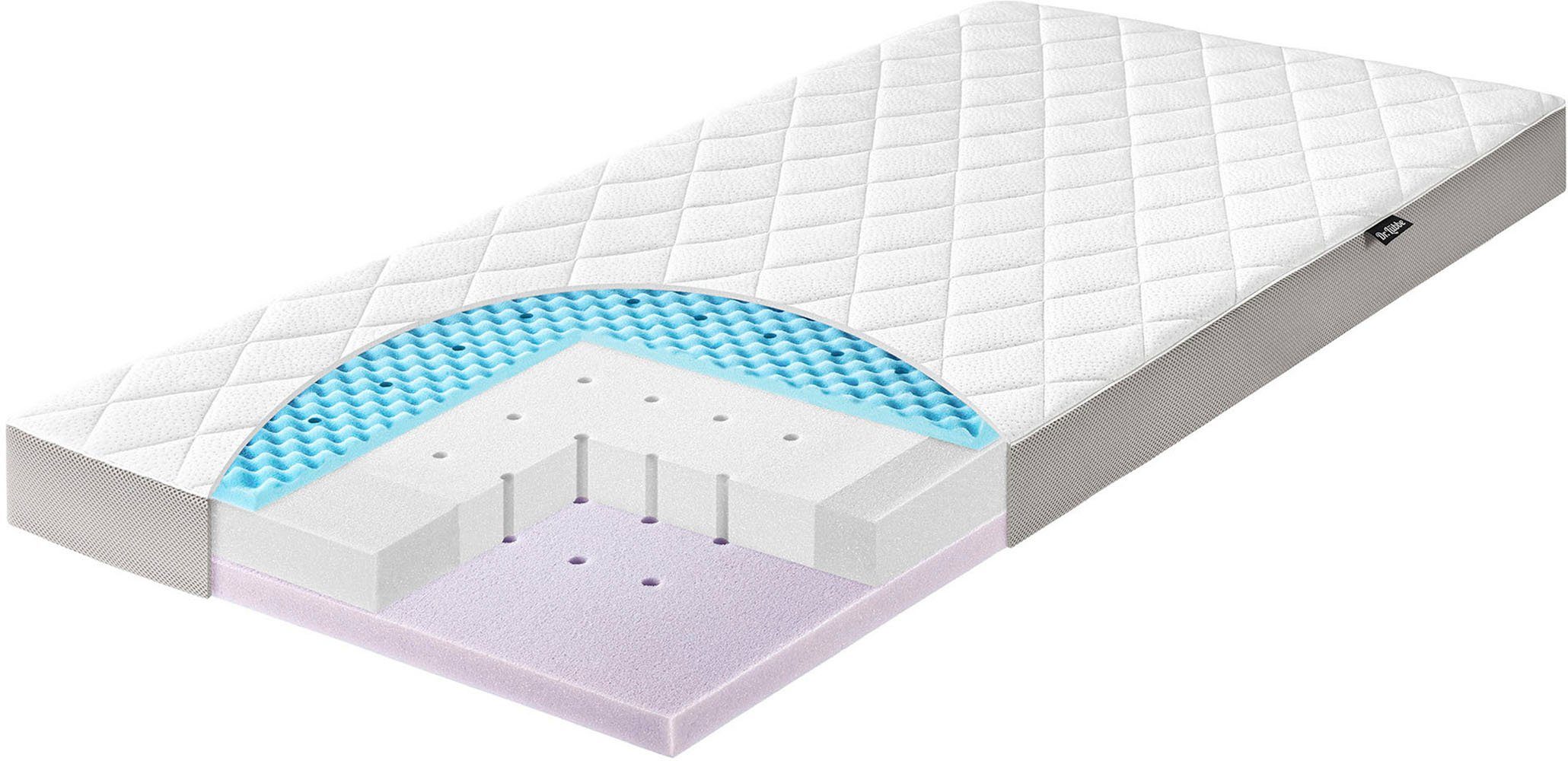 Kernaufbau | Kaltschaum (glatt, 3,5 cm hoch, 35 kg/m³), (glatt, 3,5 cm hoch, 30 kg/m³), Kaltschaum (Noppenstruktur, 2 cm hoch, 40 kg/m³) |