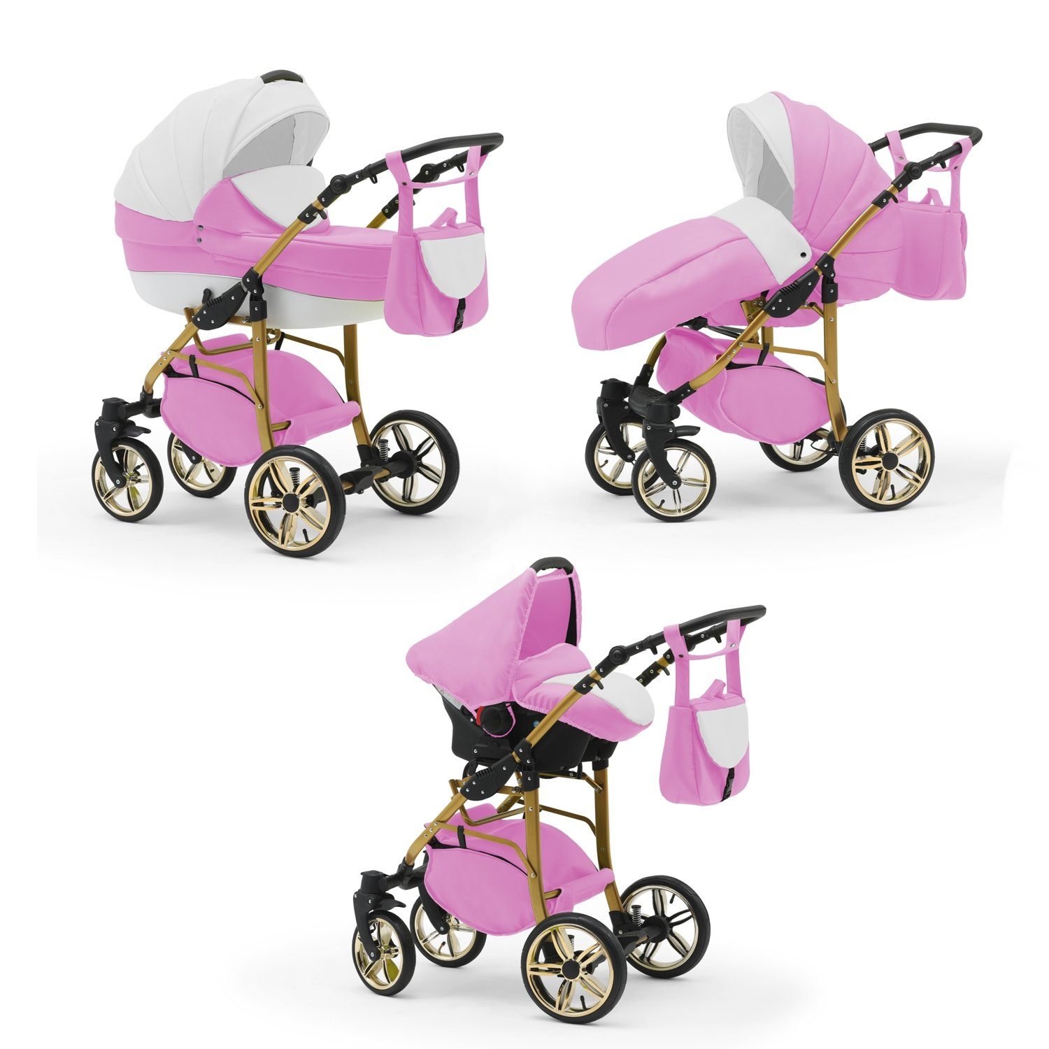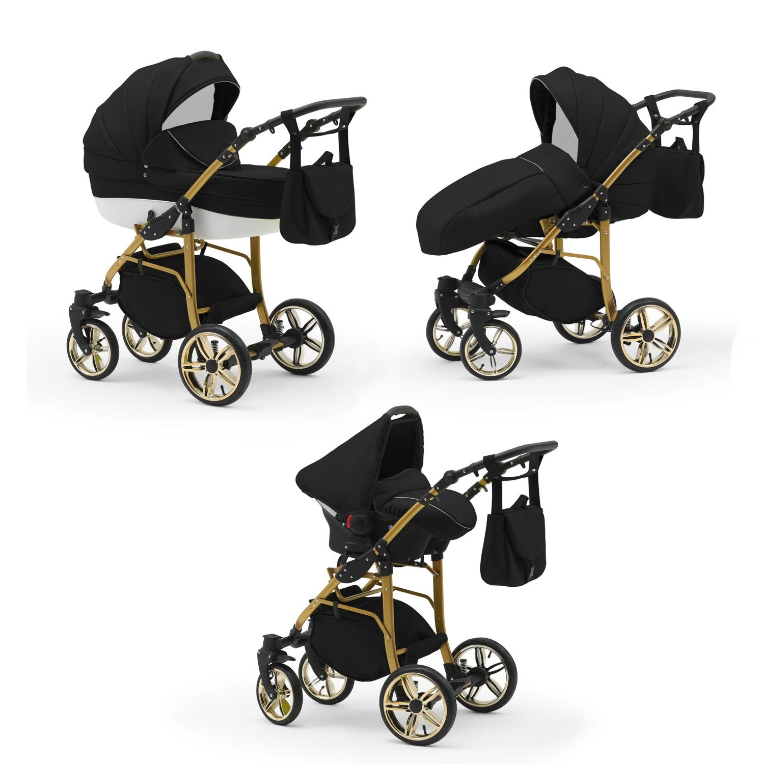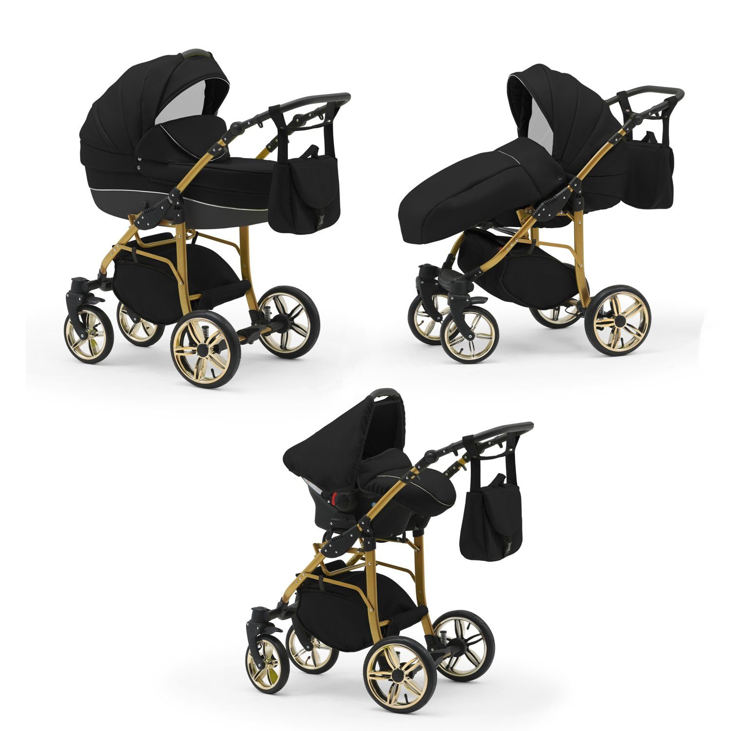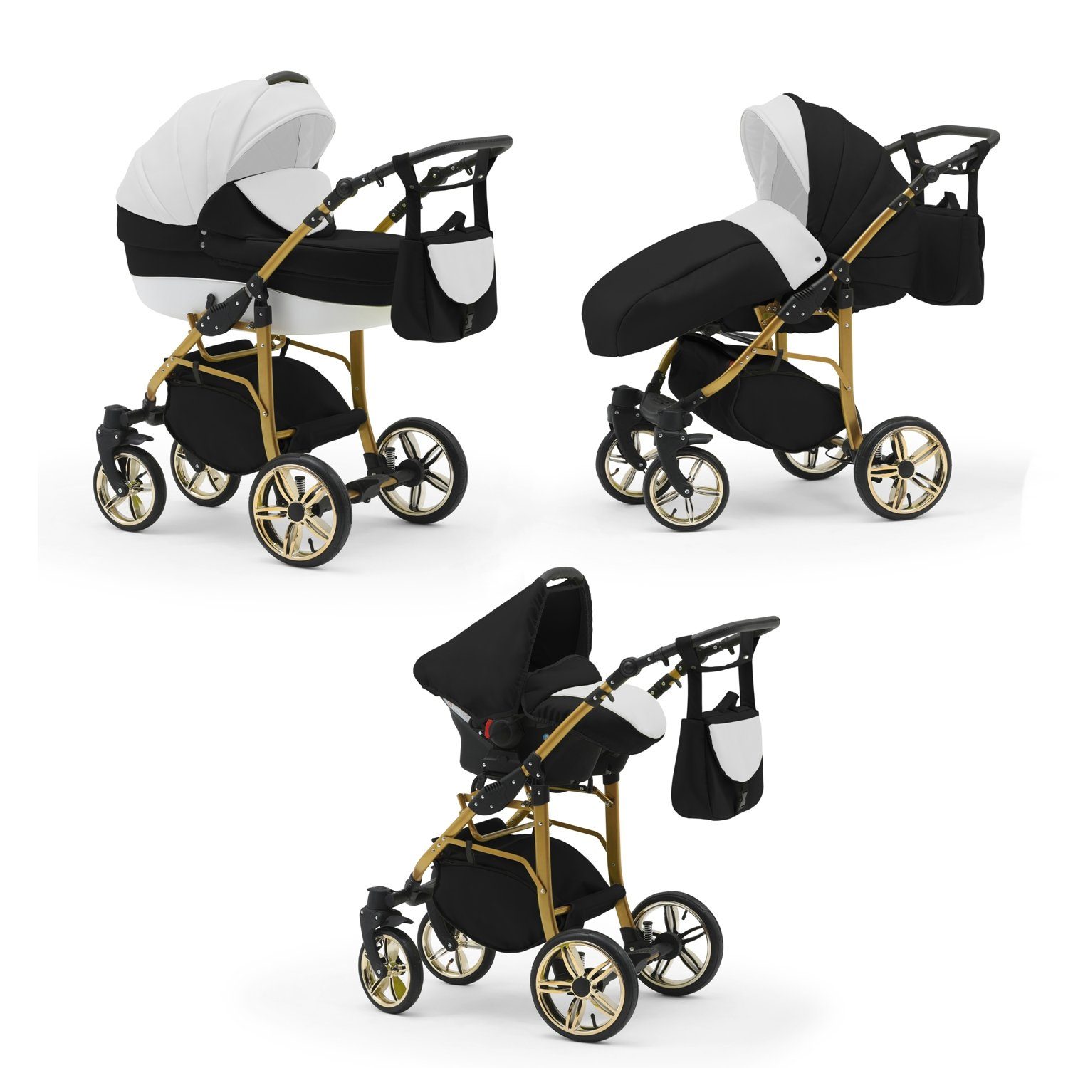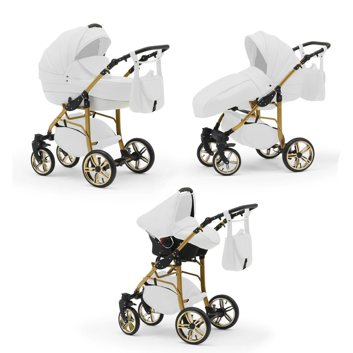 IHR SORGLOSPAKET - Das Kinderwagen-Set Neo Gold ist ein 3 in 1 Multitalent. Er wird mit 3 Aufsätzen - Wanne, Sportsitz und Autositz - die sich einfach auf das Gestell anbringen lassen an Sie geliefert. Der Lieferumfang lässt keine Wünsche offen: Kinderwagen, Abdeckung, Matratze, Inlay, Sportsitz, Beindecke, Bauchbügel, Wickeltasche, Regenfolie, Insektennetz, Autositz und Gestelladpater. Всеs was Sie und Ihr Kind von Geburt bis zum 4. Lebensjahr für Unterwegs benötigen.
