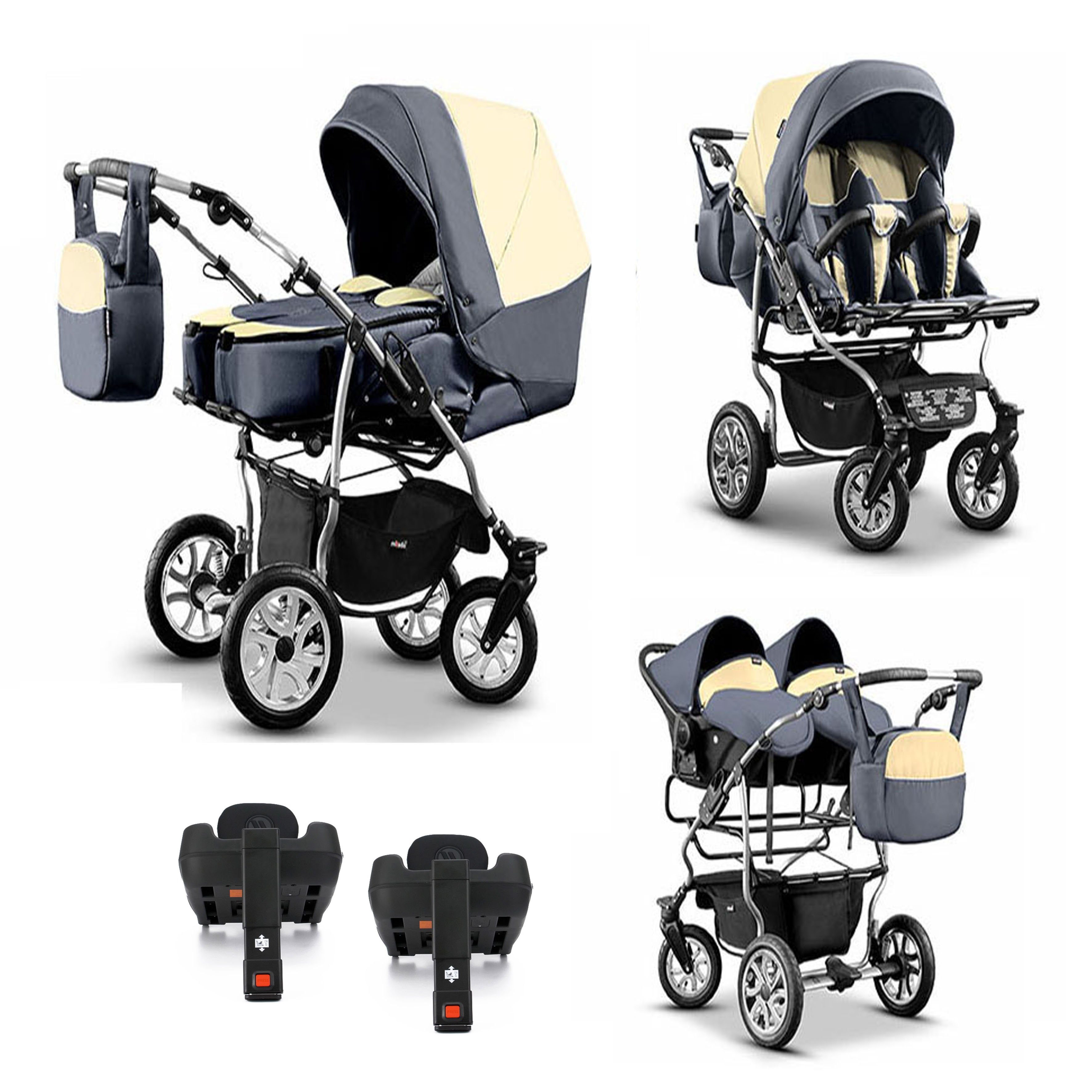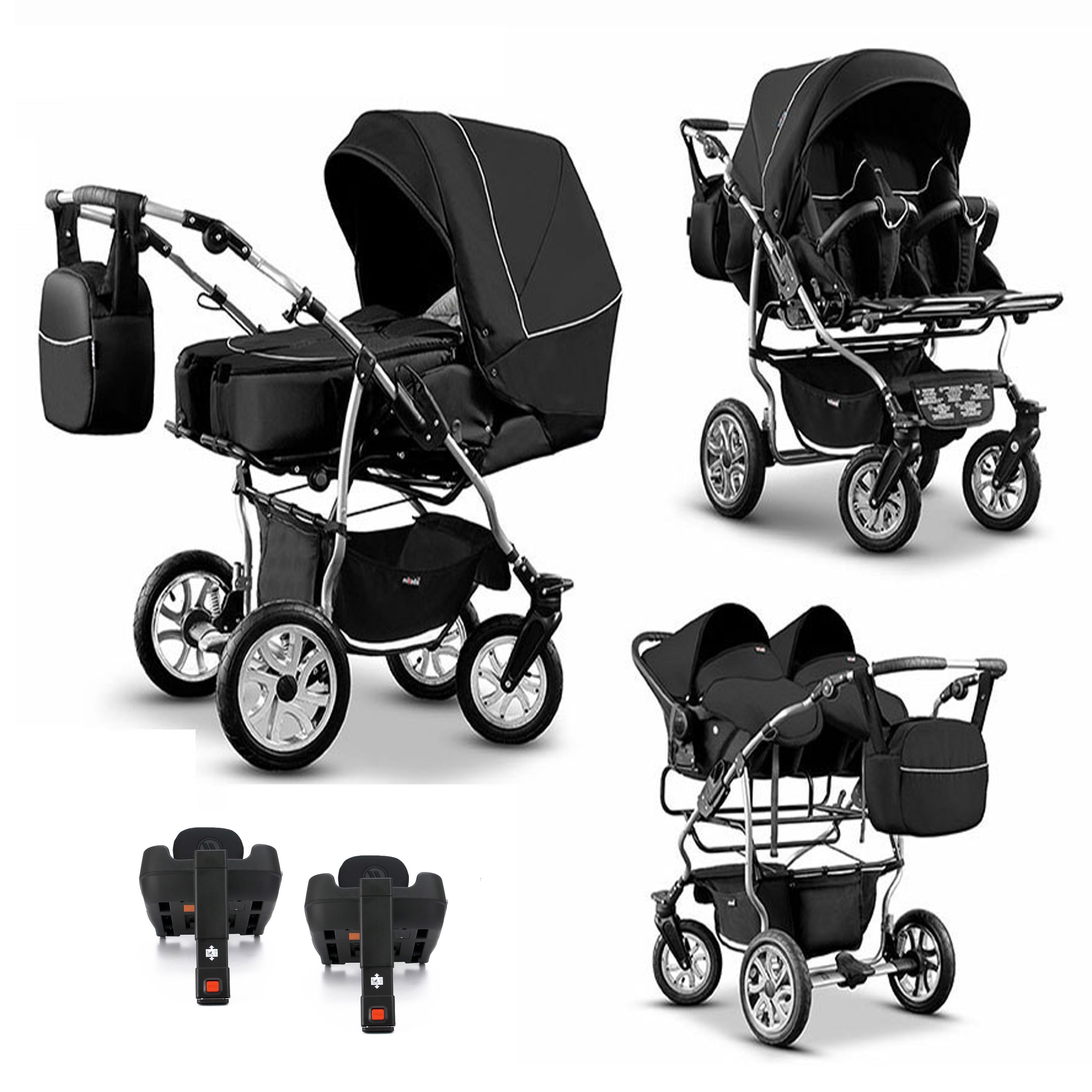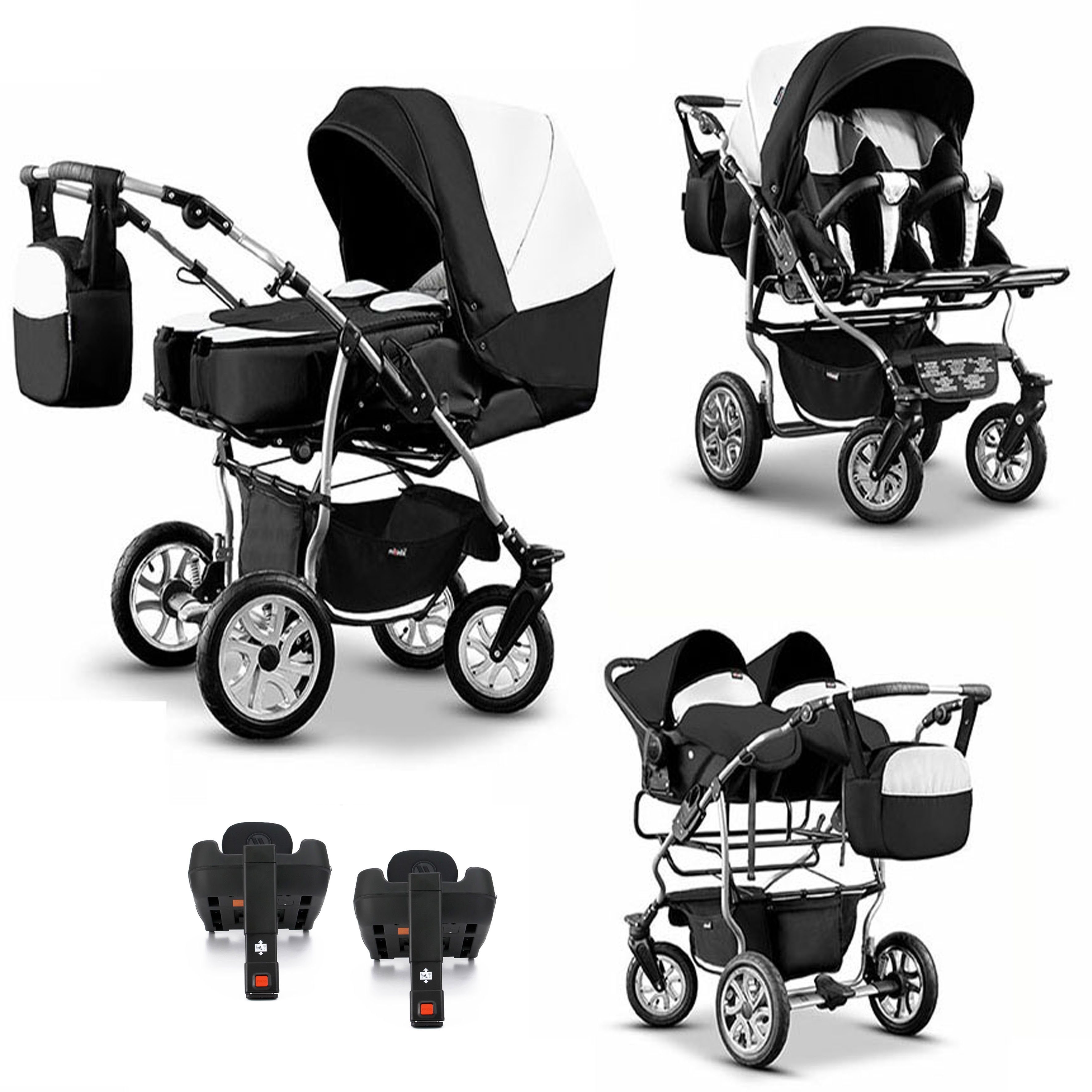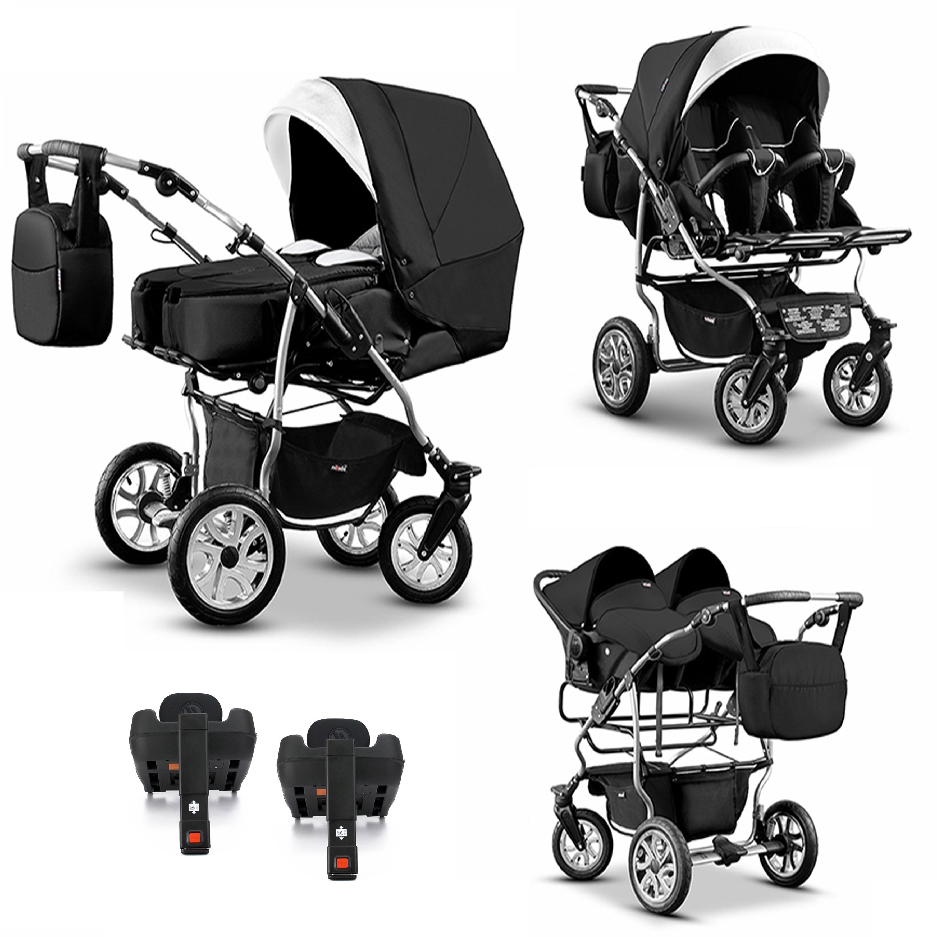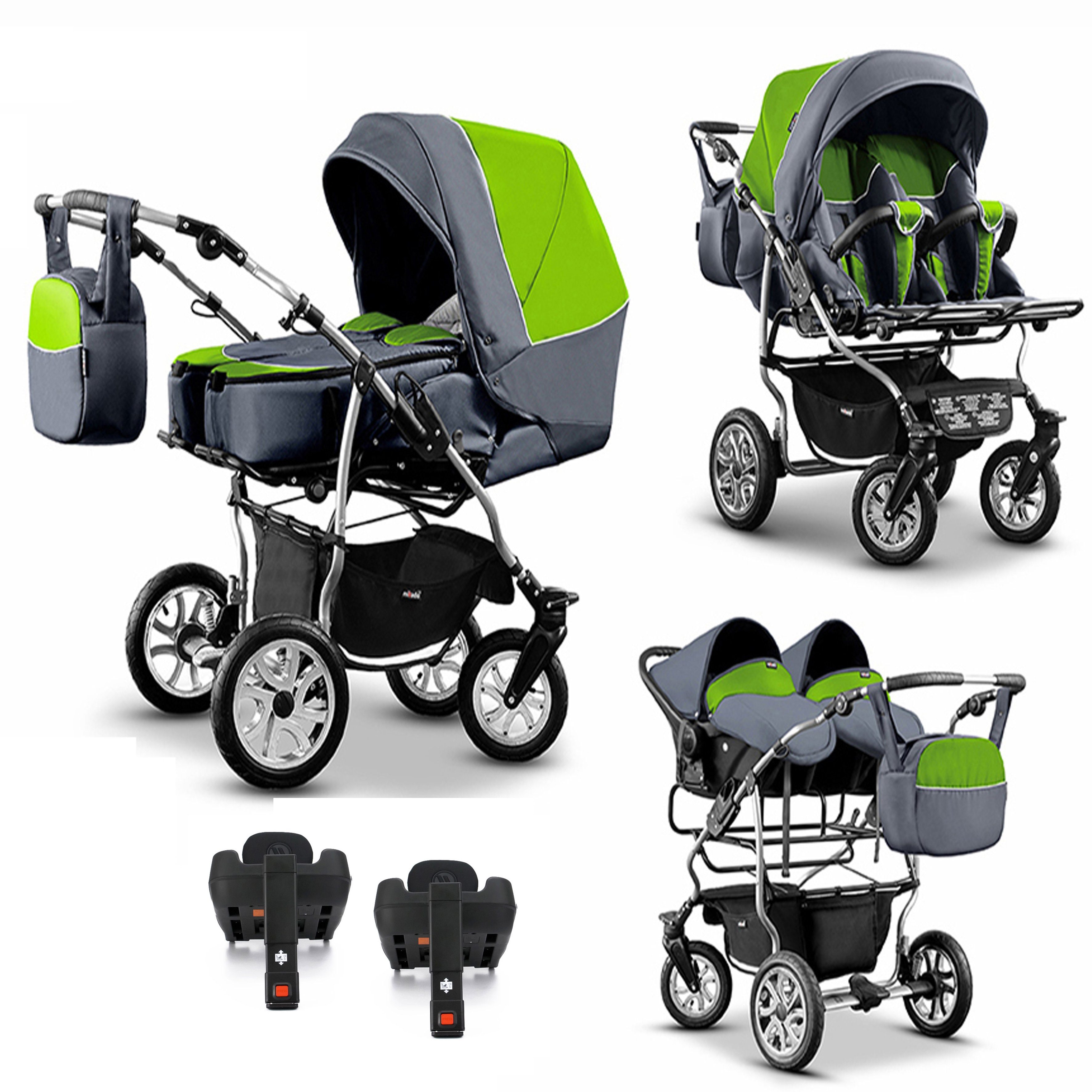 Das Kinderwagen-Set City Twin ist ein 5 in 1 Multitalent. Er wird mit 3 Aufsätzen - Wanne, Sportsitze und Autositze (inkl. Gestelladapter) - die sich einfach auf das Gestell anbringen lassen an Sie geliefert. Der Lieferumfang lässt keine Wünsche offen: Wanne inkl. 2 Tragetaschen, Abdeckung, Sportsitze, Beindecke, Bauchbügel, Wickeltasche, Regenfolie, Insektennetz, 2 x Autositze, Gestelladpater und 2 Iso Bases für den PKW. Всеs was Sie und Ihre Kinder von Geburt bis zum 4. Lebensjahr für Unterwegs benötigen.