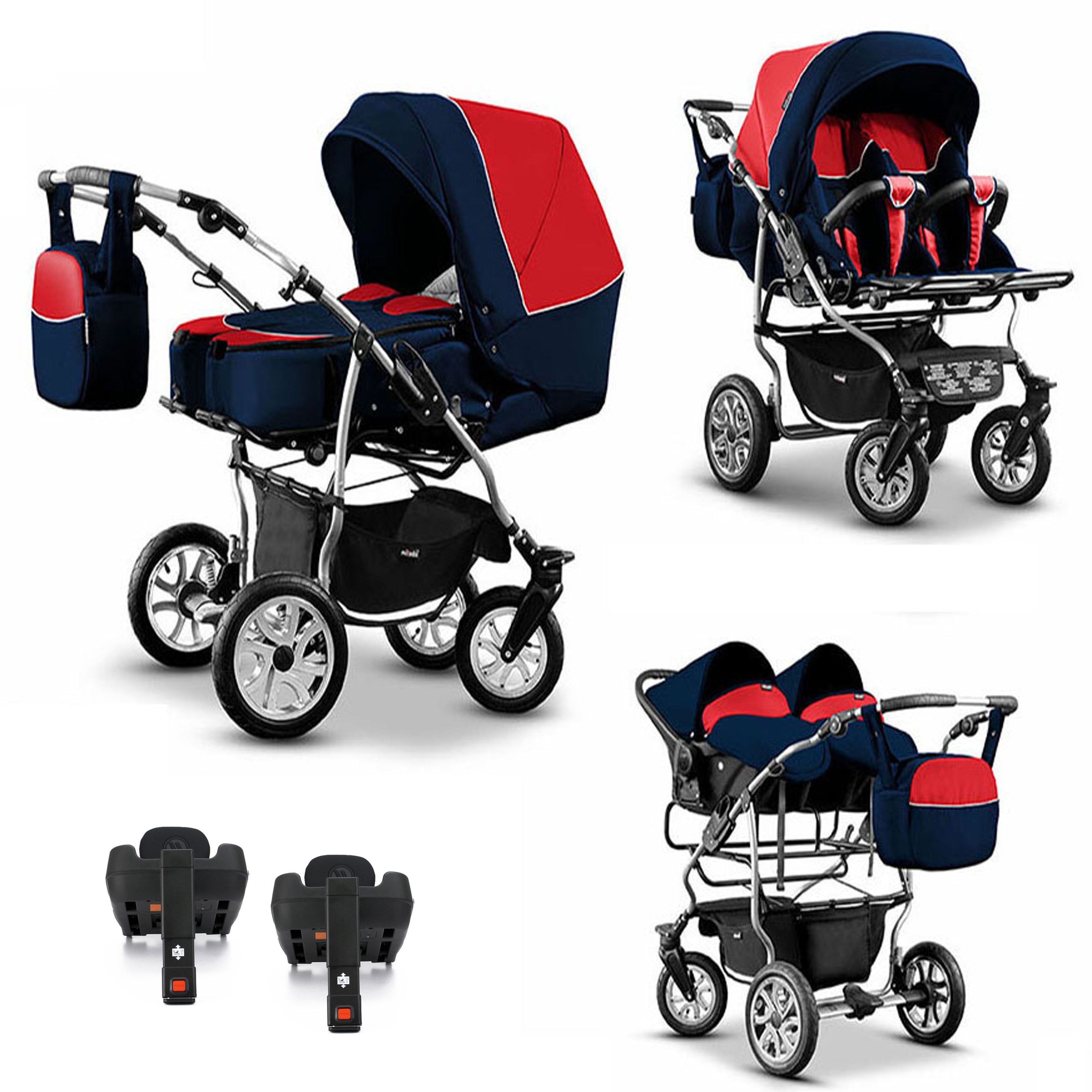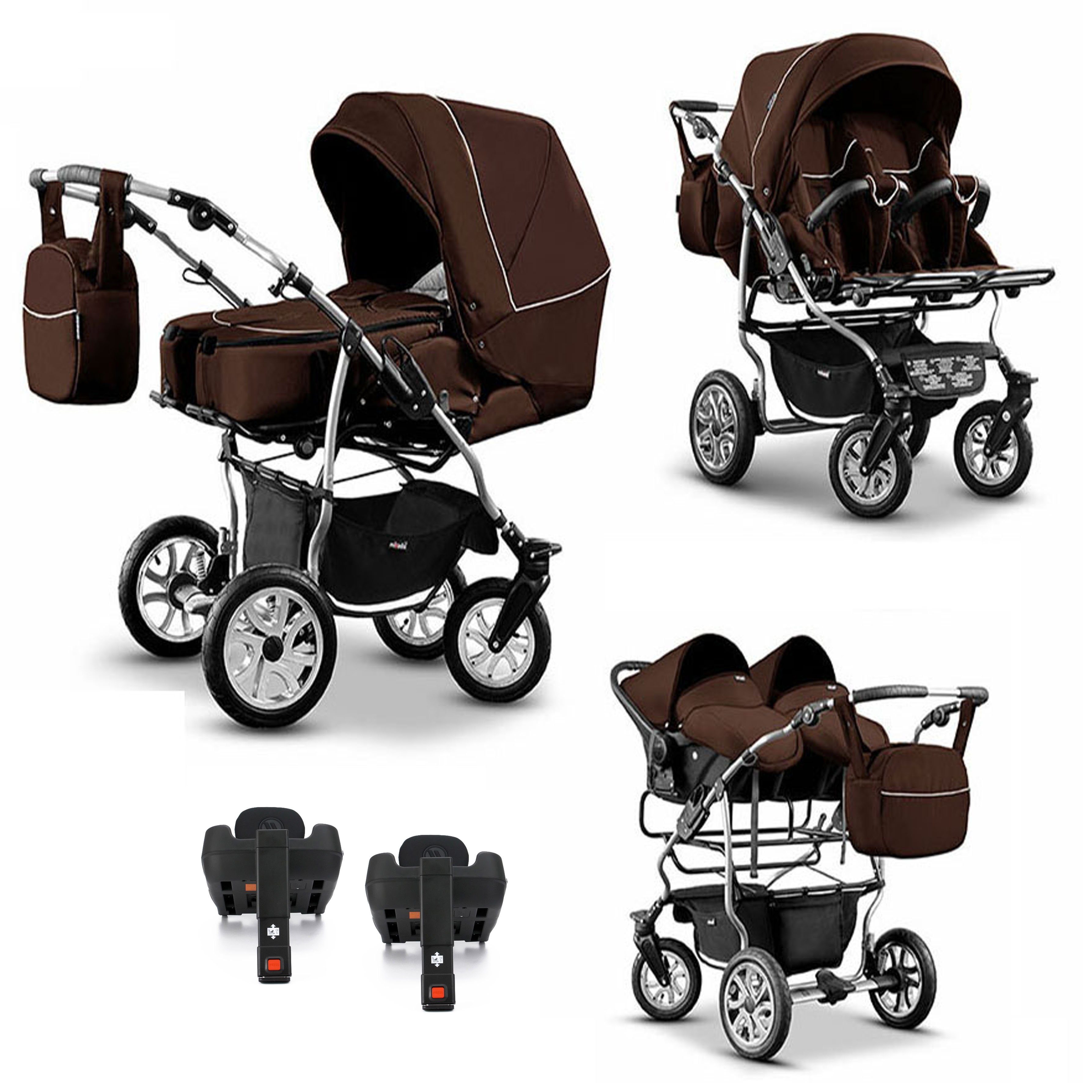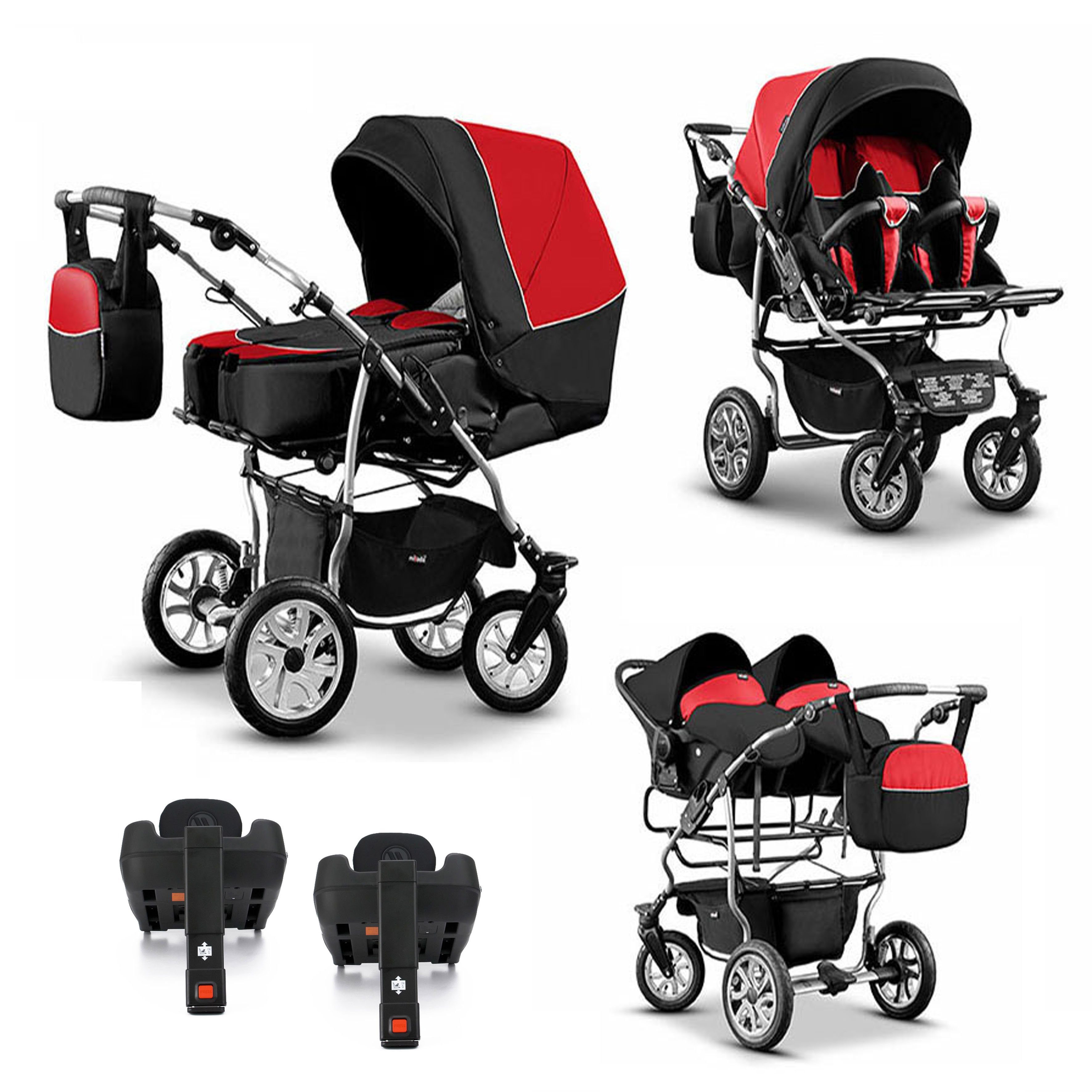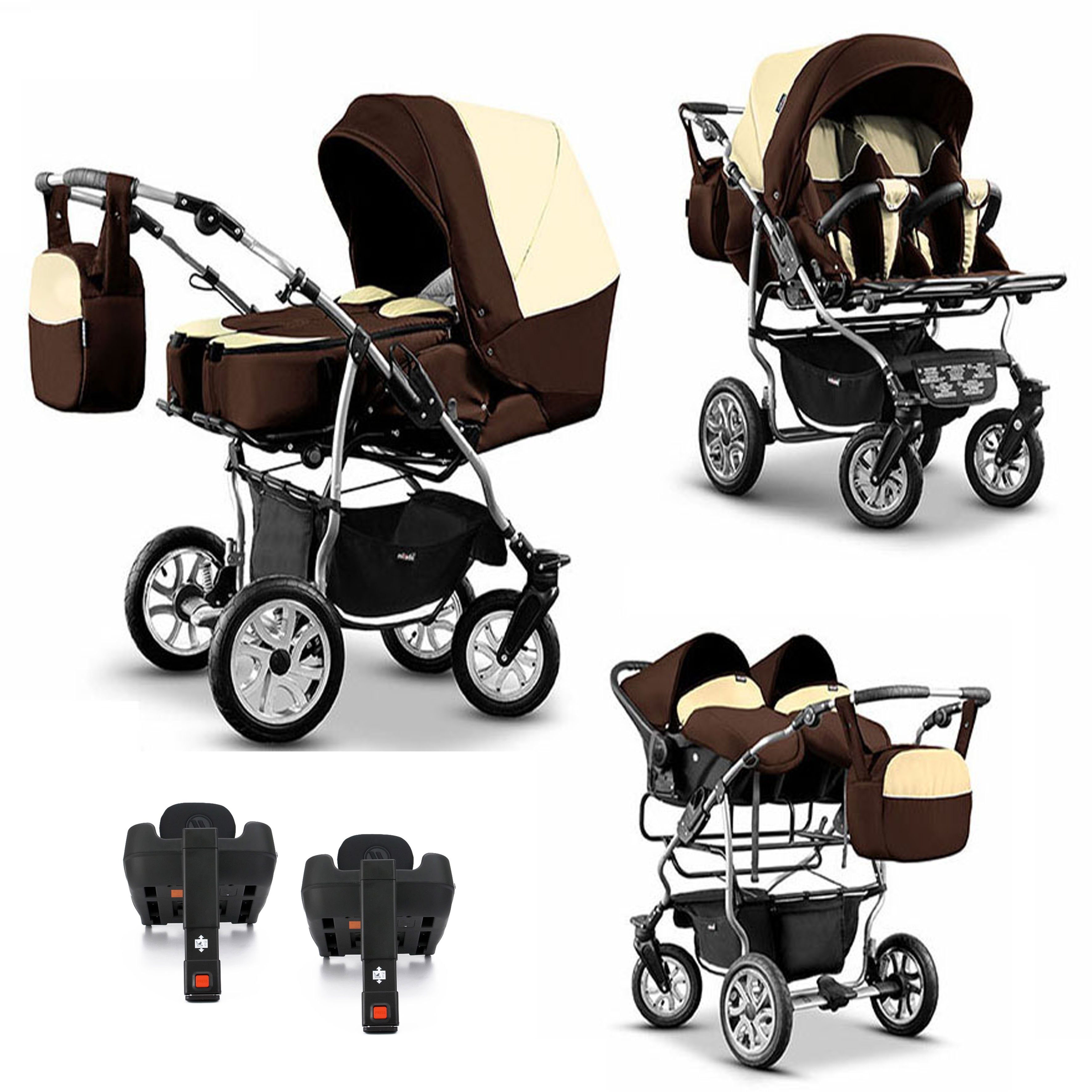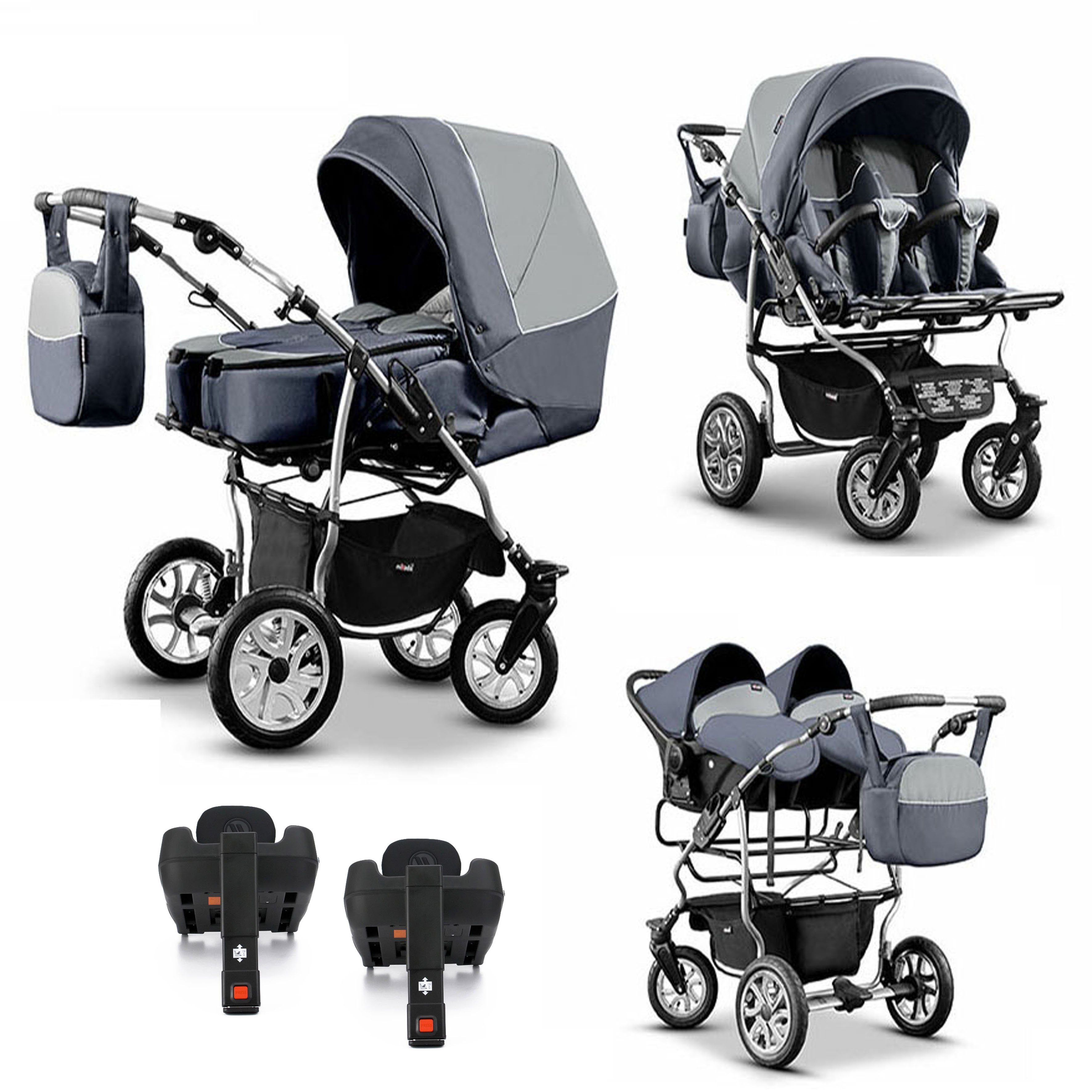 Das Kinderwagen-Set City Twin ist ein 5 in 1 Multitalent. Er wird mit 3 Aufsätzen - Wanne, Sportsitze und Autositze (inkl. Gestelladapter) - die sich einfach auf das Gestell anbringen lassen an Sie geliefert. Der Lieferumfang lässt keine Wünsche offen: Wanne inkl. 2 Tragetaschen, Abdeckung, Sportsitze, Beindecke, Bauchbügel, Wickeltasche, Regenfolie, Insektennetz, 2 x Autositze, Gestelladpater und 2 Iso Bases für den PKW. Всеs was Sie und Ihre Kinder von Geburt bis zum 4. Lebensjahr für Unterwegs benötigen.
