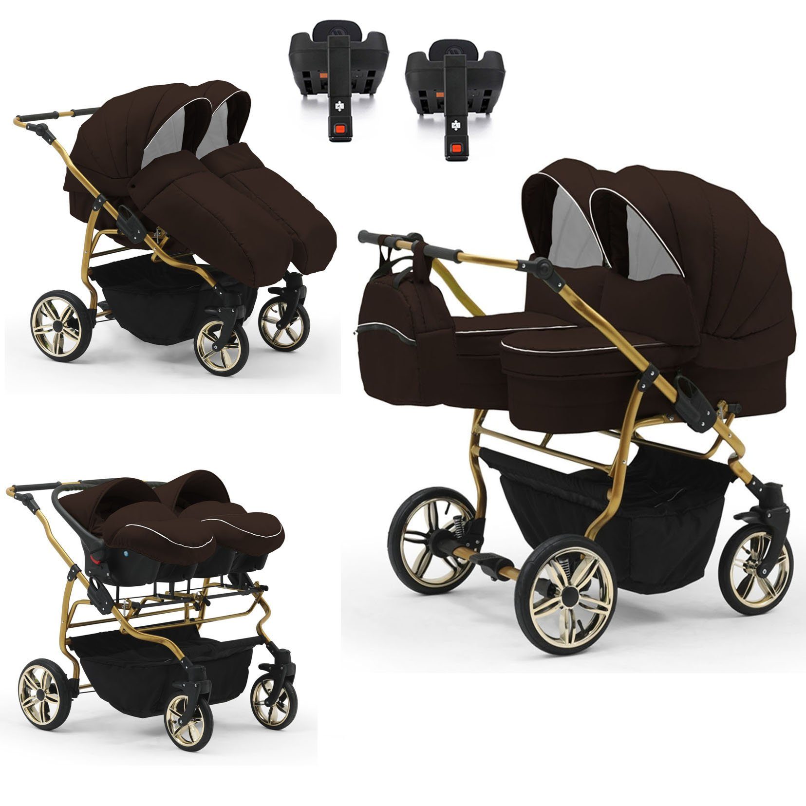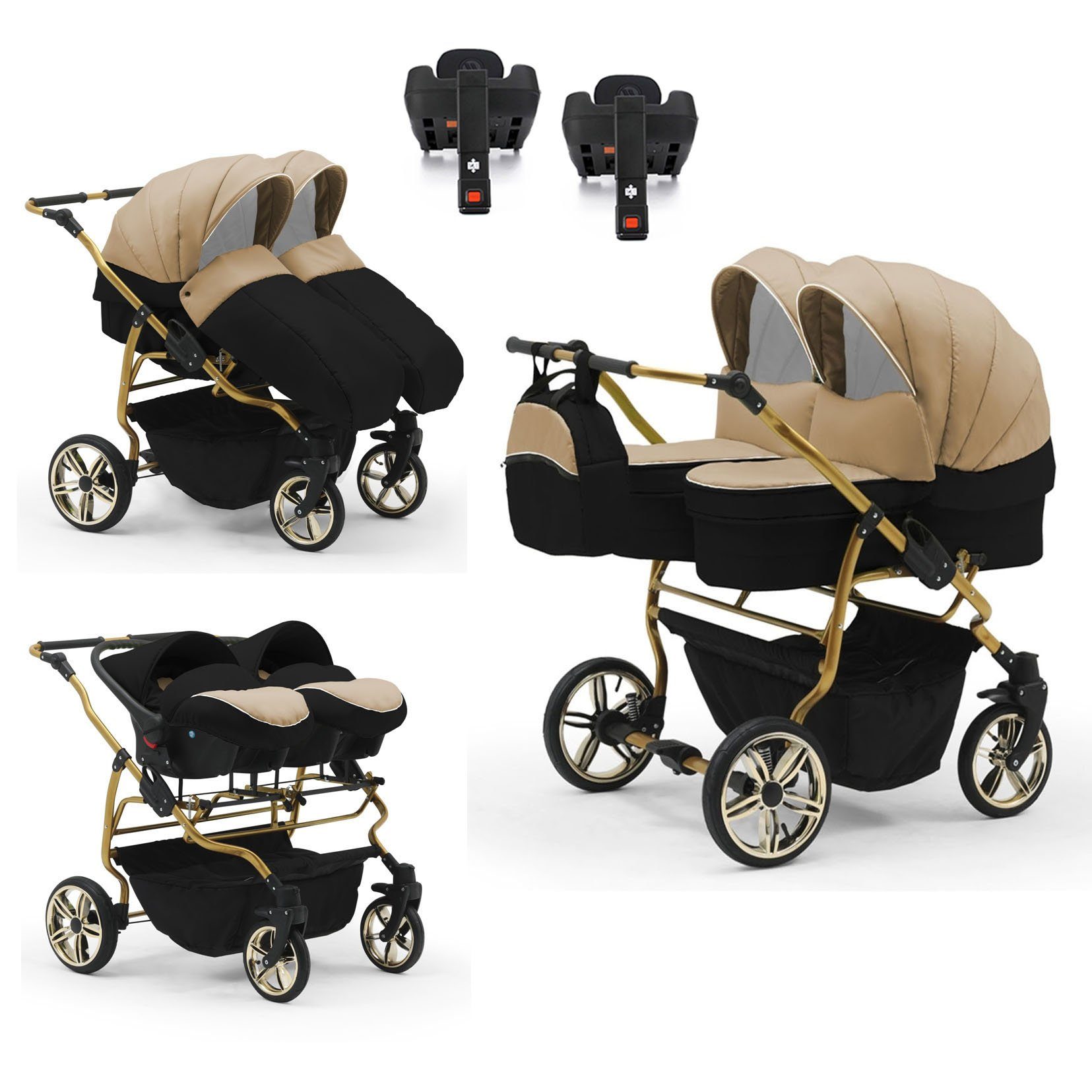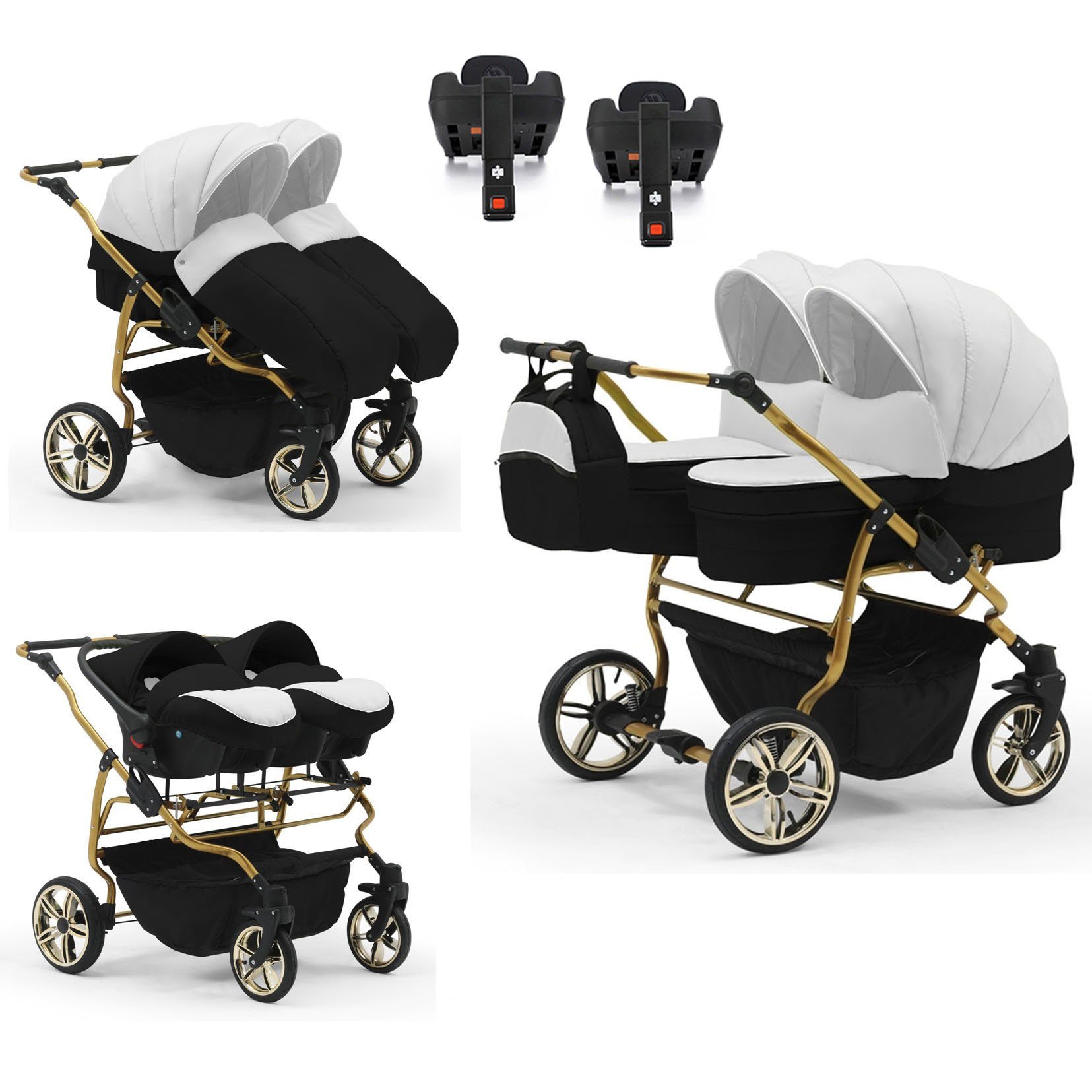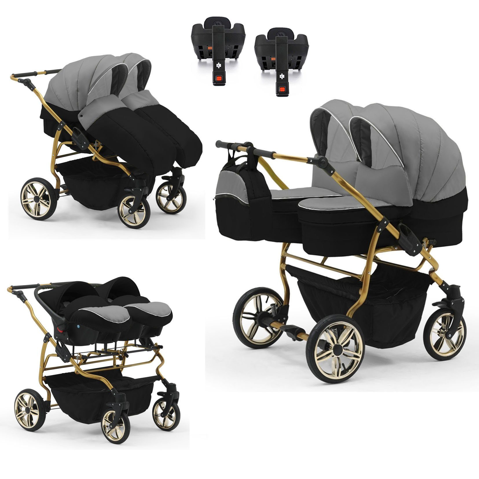 IHR SORGLOSPAKET - Das Zwillingswagen-Set Duet Lux Goldedition ist ein 3 in 1 Multitalent. Er wird mit 3 Aufsätzen - 2 x Wanne, 2 x Sportsitze und 2 x Autositze - die sich einfach auf das Gestell anbringen lassen - an Sie geliefert. Der Lieferumfang lässt keine Wünsche offen: Zwillingswagen mit Gestell, Räder und 2 Wannen, 2 x Wannenabdeckung, 2 x Matratze, 2 x Inlay, 2 x Sportsitz inkl Beindecken und Bauchbügel, Wickeltaschem, Regenfolie, Insektennetz, 2 x Autositze inkl. Dach und Beindecken ,Gestelladapter und 2 Iso Bases für den PKW. Всеs was Sie und Ihre Kinder von Geburt bis zum 4. Lebensjahr für Unterwegs benötigen.