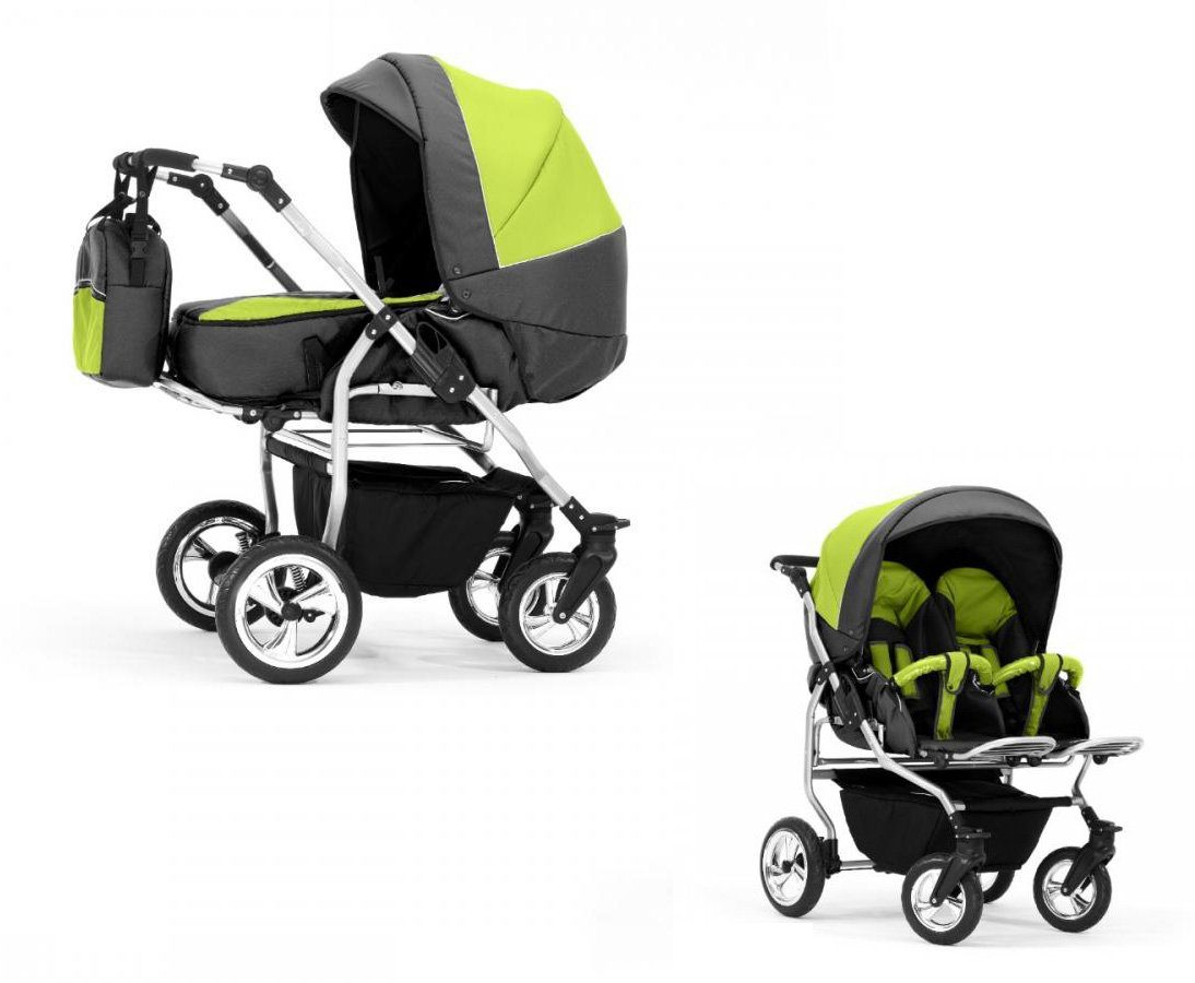 Das Kinderwagen-Set Duo ist ein 2 in 1 Multitalent. Er wird mit 2 Aufsätzen - Wanne und Sportsitze - die sich einfach auf das Gestell anbringen lassen an Sie geliefert. Der Lieferumfang lässt keine Wünsche offen: Wanne inkl. 2 Tragetaschen, Abdeckung, Sportsitze, Beindecke, Bauchbügel, Wickeltasche, Regenfolie und Insektennetz. Всеs was Sie und Ihre Kinder von Geburt bis zum 4. Lebensjahr für Unterwegs benötigen.