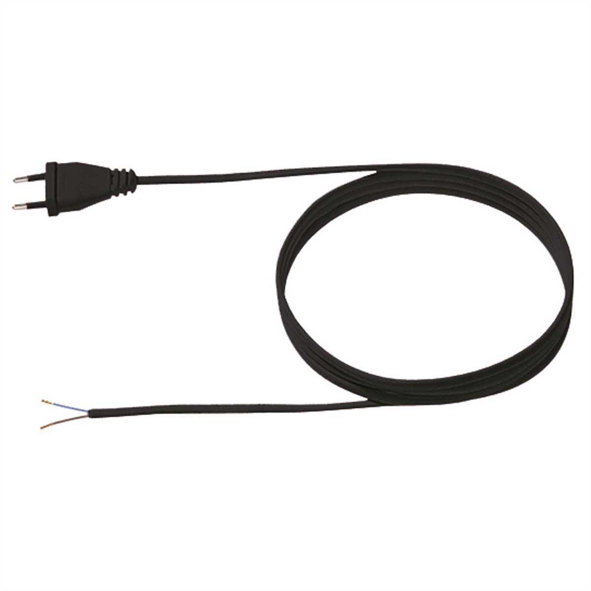 Stromverteiler ZULEITUNGEN/ ANSCHLUSSLEITUNGEN Stromleitung 2,5A/ 250V~ 3 m H03VVH2-F 2 0,75 mm² schwarz CEE 7/16 Euroflachstecker zentral gespritzt 25mm abgemantelt mit Aderendhülsen unverpackt