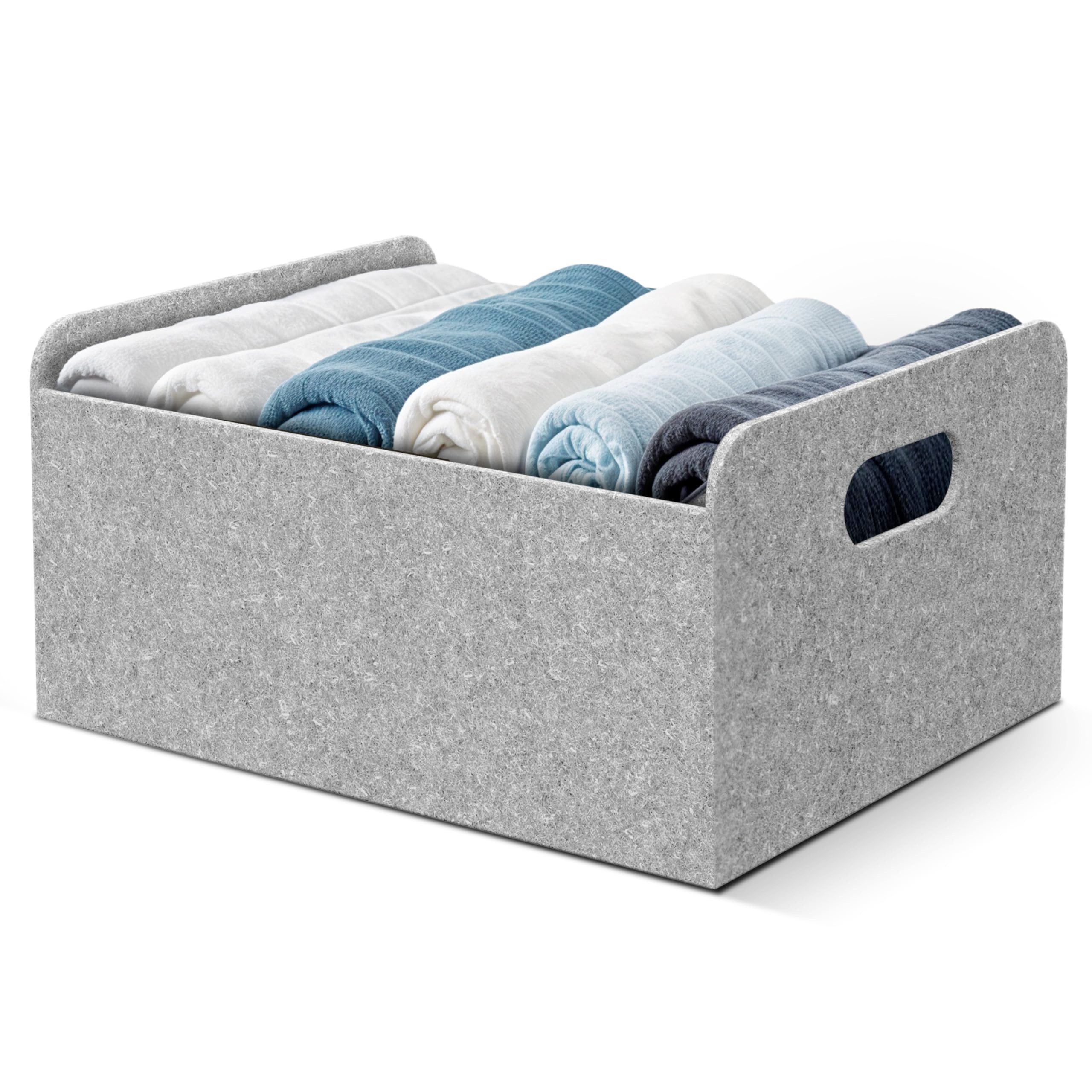 Stilvolle Helfer für ein aufgeräumtes Zuhause In einem hektischen Alltag ist es oft eine Herausforderung, Ordnung und Struktur im Haushalt zu bewahren. Mit unseren trendigen Filzorganizern wird diese Aufgabe jedoch leicht gemacht. Diese stilvollen Helfer verwandeln Ihr Zuhause in einen gemütlichen und organisierten Ort, an dem Sie sich rundum wohlfühlen können. Vielseitig einsetzbar Unsere Alltagshelfer sind nicht nur praktisch, sondern auch vielseitig einsetzbar. Ob Spielsachen, Badutensilien, Gästehandtücher, Socken oder Unterwäsche – alles findet seinen Platz. Auch kleiner Krimskrams, der sonst schwer zu verstauen ist, kann problemlos untergebracht werden. Die faltbaren Filz-Körbchen sorgen für Ordnung in Kleiderschrank, Kommode oder Regal und helfen dabei, den Überblick zu behalten. Einsatzmöglichkeiten: Kinderzimmer: Spielzeug und Bastelmaterialien ordentlich verstauen. Badezimmer: Pflegeprodukte und Handtücher griffbereit halten. Schlafzimmer: Socken, Unterwäsche und Accessoires ordentlich sortieren. Wohnzimmer: Fernbedienungen, Magazine und Krimskrams diskret verstauen. Praktisch und handlich Unsere Ordnungskörbchen sind speziell kompatibel mit bekannten Möbelstücken wie dem IKEA Besta und Billy Regal. Sie passen ebenso in viele andere Bücherregale, Kleiderschränke, Schubladen, auf den Schreibtisch oder die Fensterbank. Diese Flexibilität ermöglicht es Ihnen, unterschiedliche Räume wie Büro, Kinderzimmer, Wohnzimmer, Badezimmer oder Flur neu zu gestalten und zu organisieren. Vorteile der Filz-Körbchen: Leicht zu transportieren: Dank ihres geringen Gewichts und der Griffe. Platzsparend: Lässt sich bei Nichtgebrauch einfach zusammenfalten. Stilvoll: Ergänzt jede Einrichtung mit einem modernen, minimalistischen Design. Mit unseren Filzorganizern schaffen Sie ein Zuhause, das nicht nur ordentlich, sondern auch stilvoll ist. Lassen Sie das Chaos hinter sich und genießen Sie die Ruhe eines perfekt organisierten Raumes.