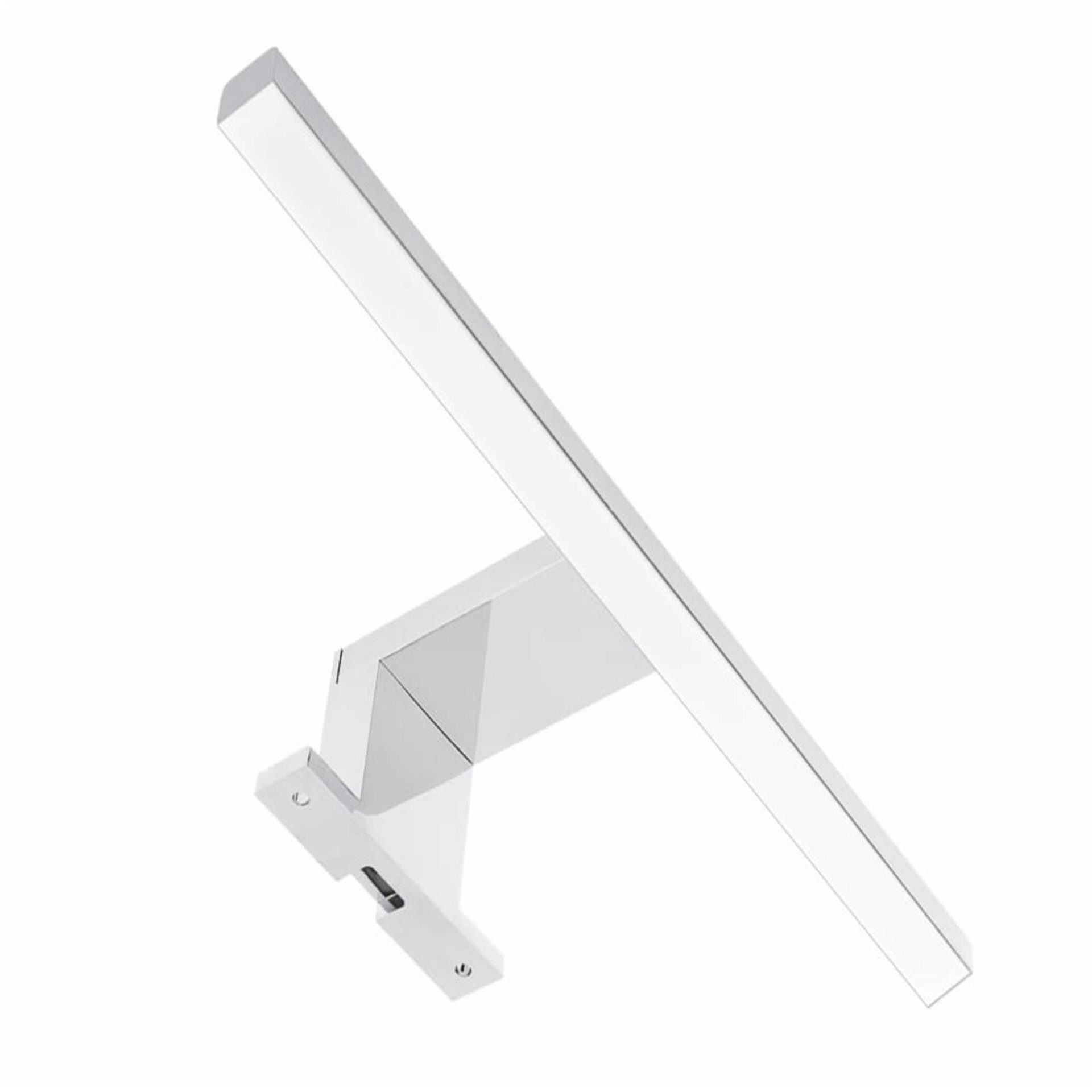 Diese Leuchte ist speziell für die Anbringung am Spiegelschrank konzipiert und wird mit allen notwendigen Schrauben geliefert, sodass die Installation zum Kinderspiel wird. Das moderne, geradlinige Design in Chrom fügt sich nahtlos in die Ästhetik moderner Bäder ein und verleiht jedem Raum ein frisches und ansprechendes Aussehen.