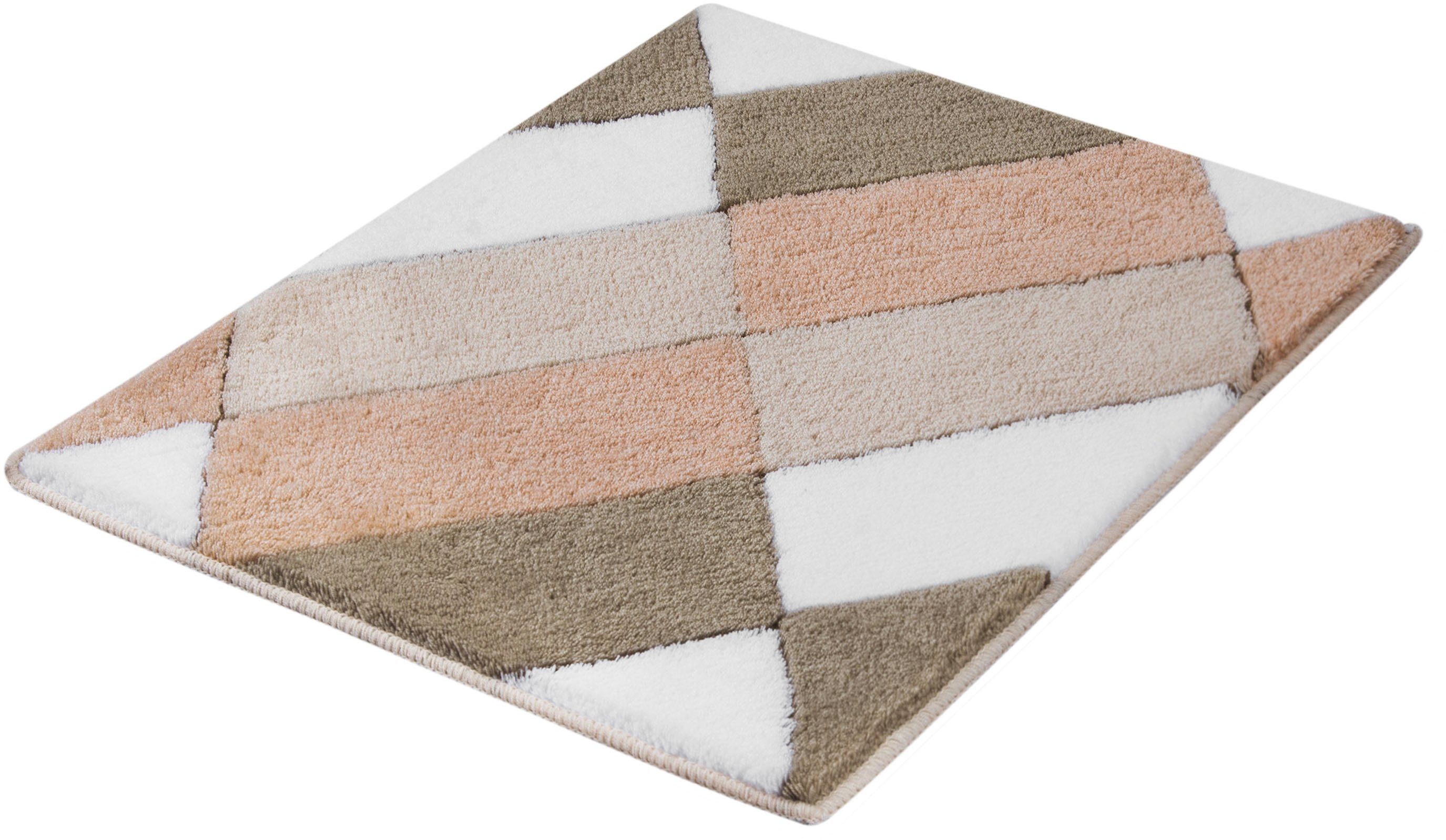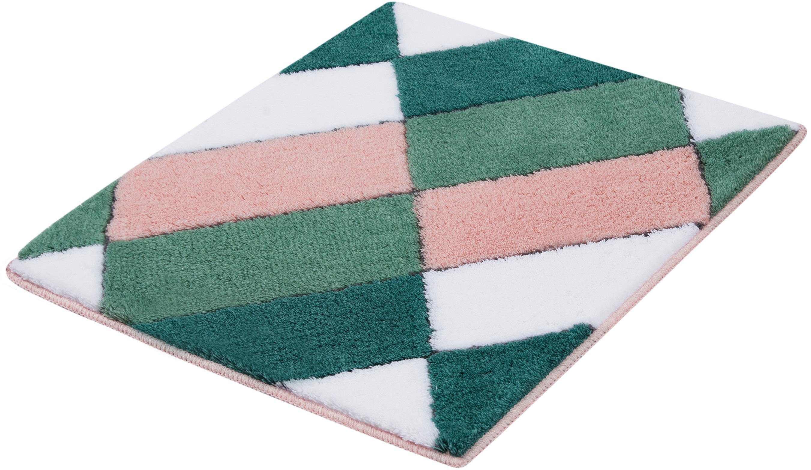 Nach dem Motto „Wohlfühlen Zuhause“ können Sie mit Badteppich "Ayana" von Kleine Wolke, Ihr Badezimmer mit wenigen Handgriffen individuell gestalten und zeitlose Akzente setzen. Das grafische, auffällige Rauten-Design wirkt durch den leichten Hoch-Tief-Effekt. Modische Farben überzeugen in Kombination mit den klassischen Non-Colors. Die dichte Oberfläche bietet Ihren Füßen eine besonders angenehme, schnelltrocknende Unterlage, die viel Nässe aufnehmen kann. Genutzt werden kann der Teppich selbstverständlich auch auf Fußbodenheizungen. Das pflegeleichte Modell gibt es in unterschiedlichen Farbvarianten und verschiedenen Größen. Ein Hingucker in jedem Badezimmer. Bitte beachten Sie, dass Badteppiche – insbesondere Modelle mit flauschigem Flor – herstellungsbedingt anfangs flusen können. Diese Flusenbildung ist unbedenklich und verflüchtigt sich in der Regel nach den ersten Wäschen. Um den Flor aufzulockern und die Lebensdauer des Teppichs zu verlängern, empfehlen wir, ihn regelmäßig auszuschütteln oder mit geringer Saugkraft abzusaugen. Baumwollteppiche sollten bei maximalem Wasserstand gewaschen werden – idealerweise in einem Kissenbezug, um Flusen aufzufangen.