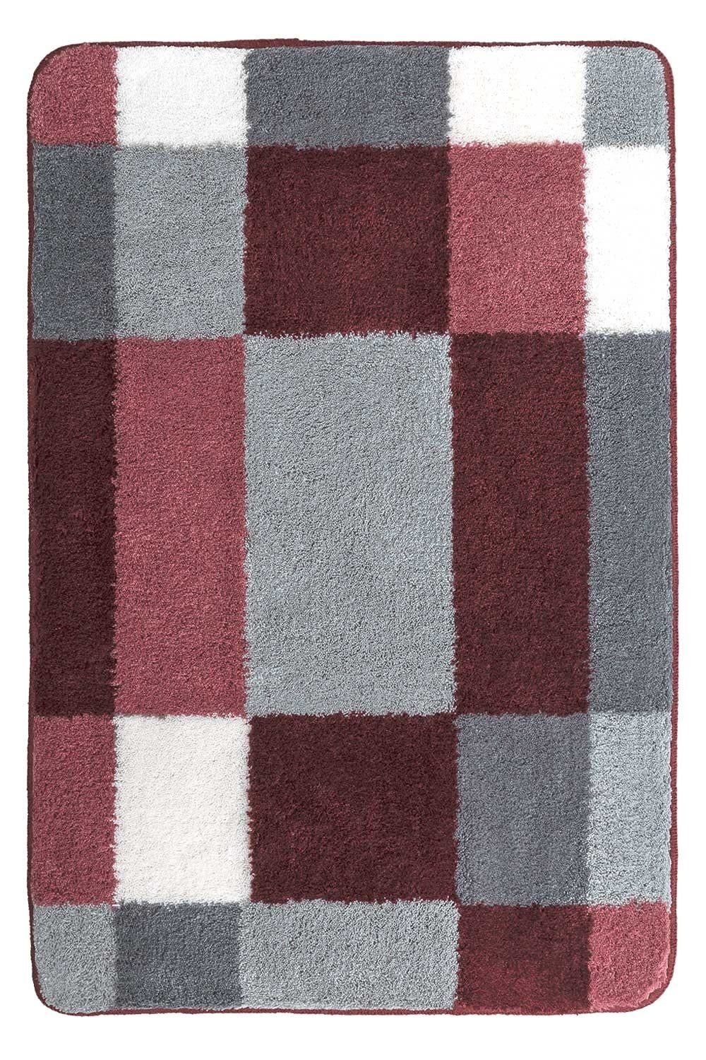 Badematte in bordeaux, grau und weiß