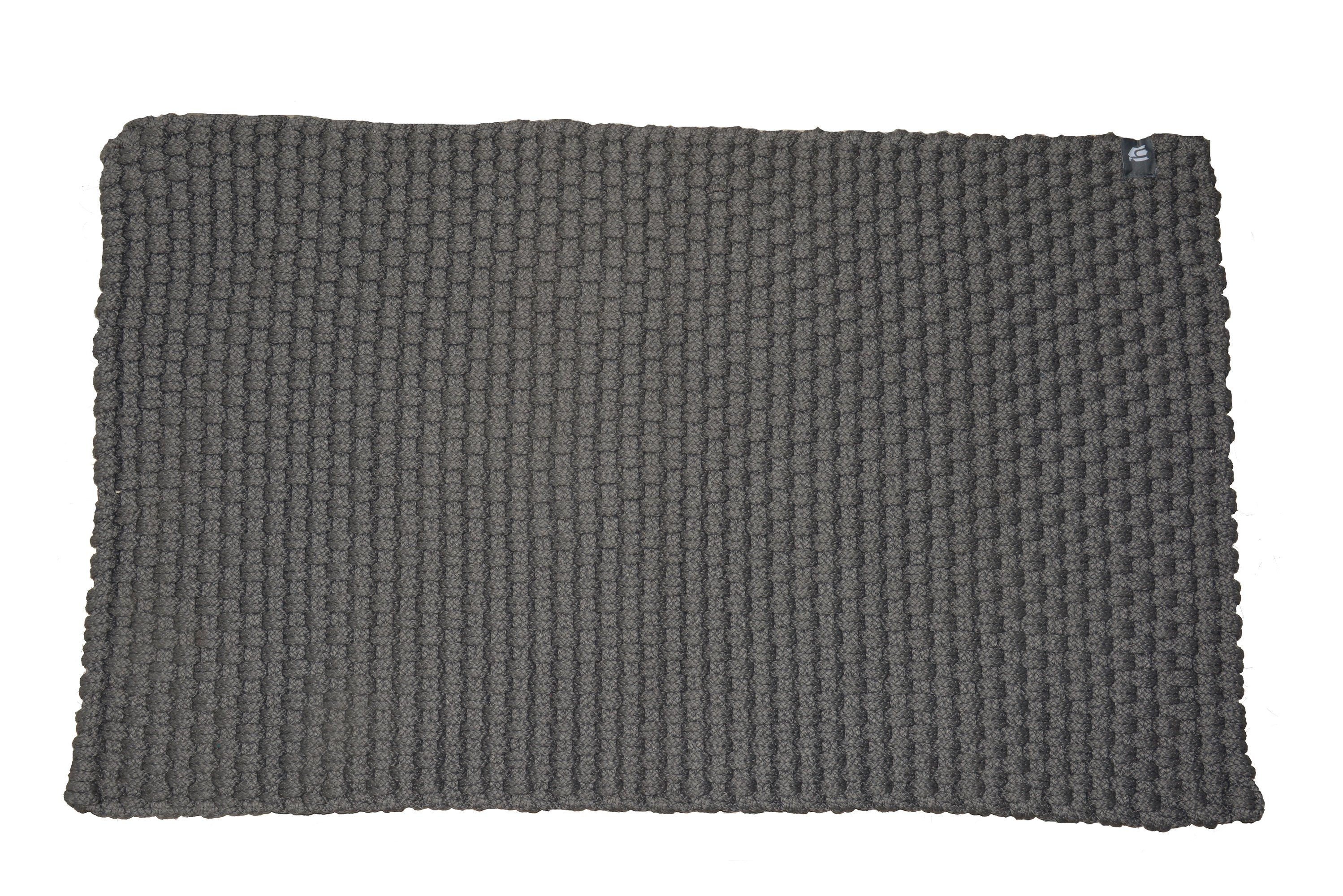 Multifunktionale Matte aus strapazierfahigem geflochtenen Kunststoff für drinnen und draußen. 3 Größen: 50x80 / 60x100 / 70x130 und drei Farben: grau, grau-weiß, aqua.