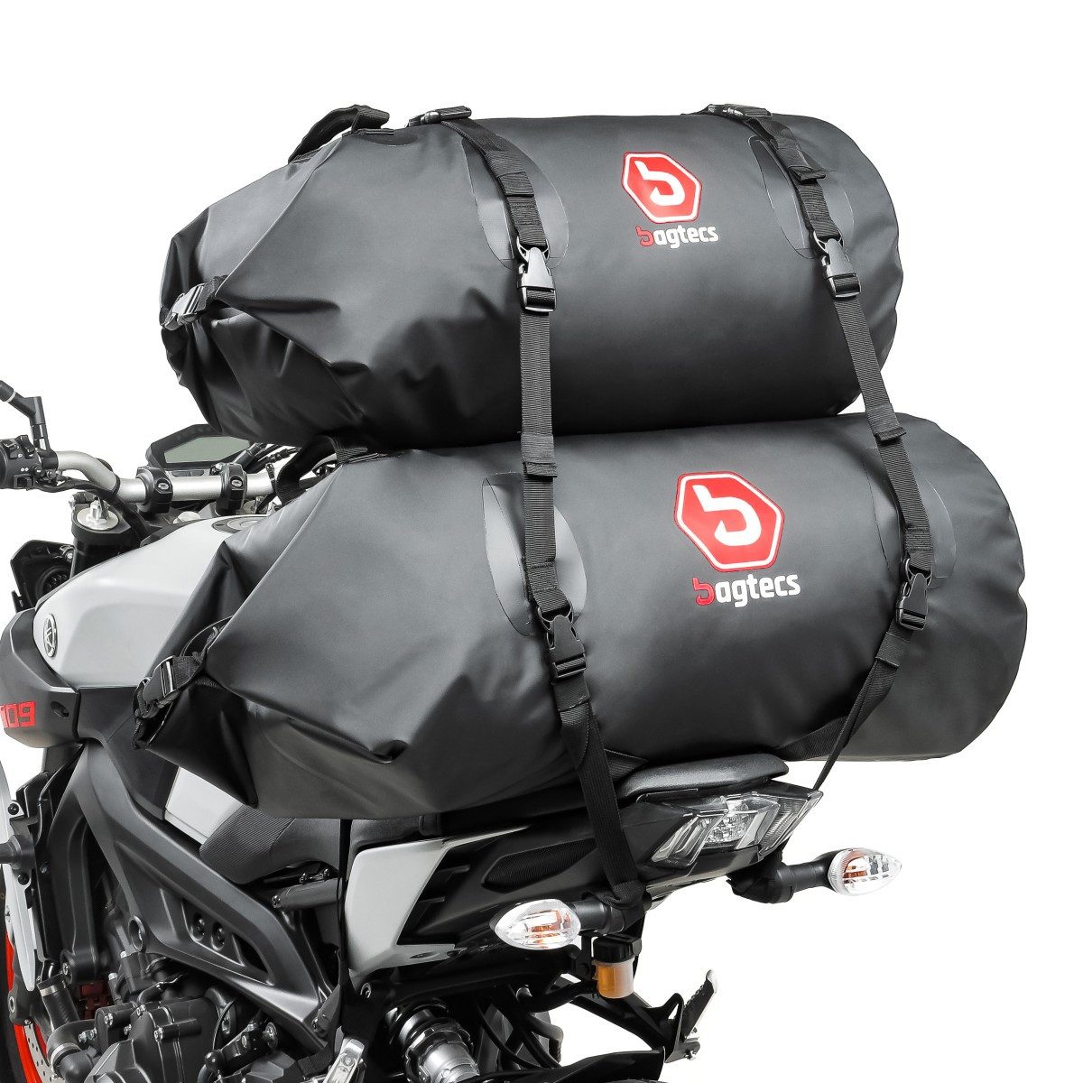 • Lieferumfang: Gepäckrolle BR50 und BR30 mit jeweils vier Schlaufengurten und Verbindungssystem. Set Bagtecs Gepäckrollen mit integrierten Befestigungsgurten und Gesamtvolumen von 8