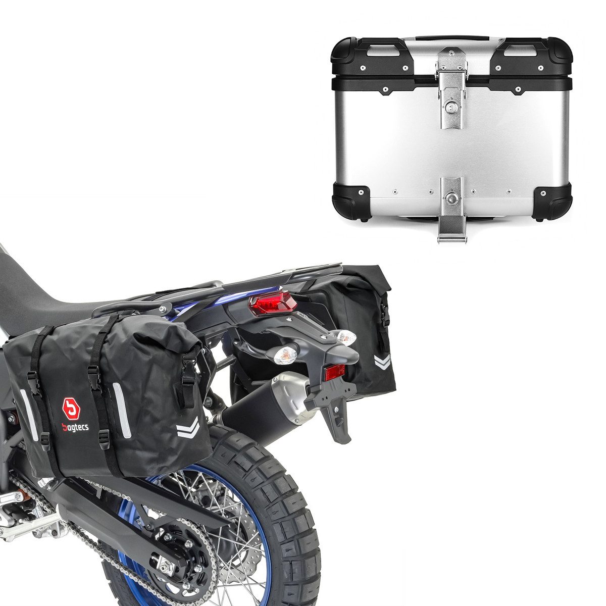 Bagtecs Reisetasche Set: Motorrad Satteltaschen Wasserdicht WP8 2x30L # mit Alu Top Case X